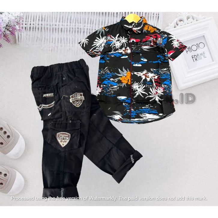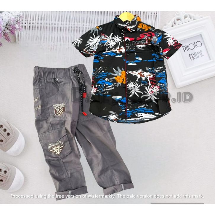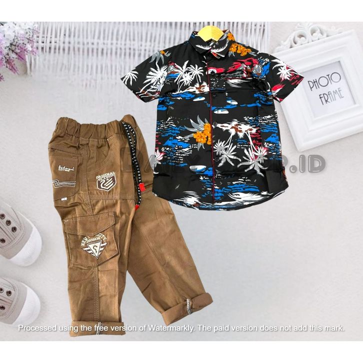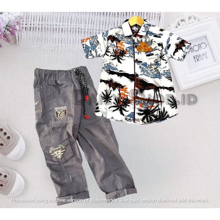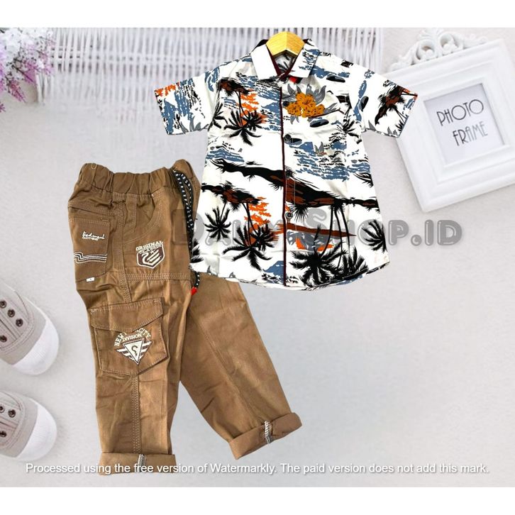 Setelan Celana Katun Cargo Panjang Anak Laki laki Baju Kemeja Full Printing Lengan Pendek Buat Usia Anak 1-12 Tahun