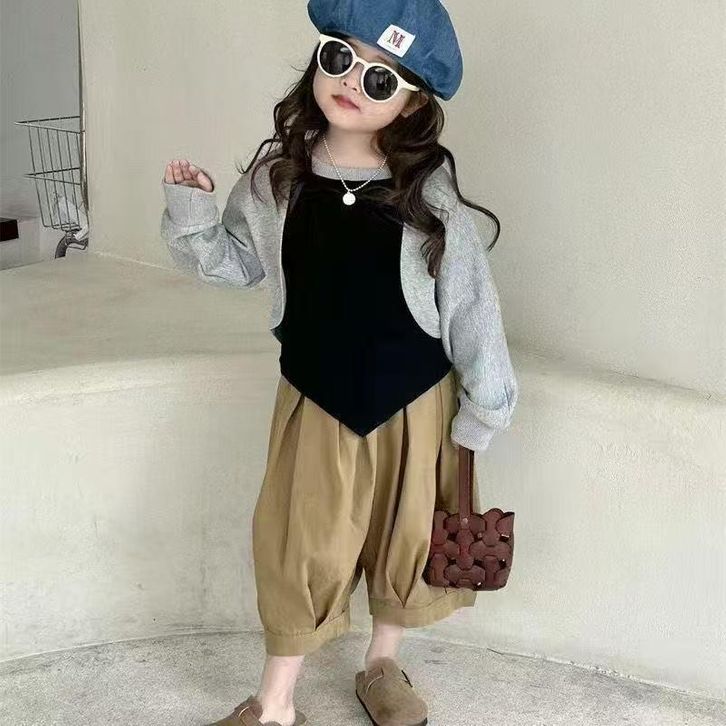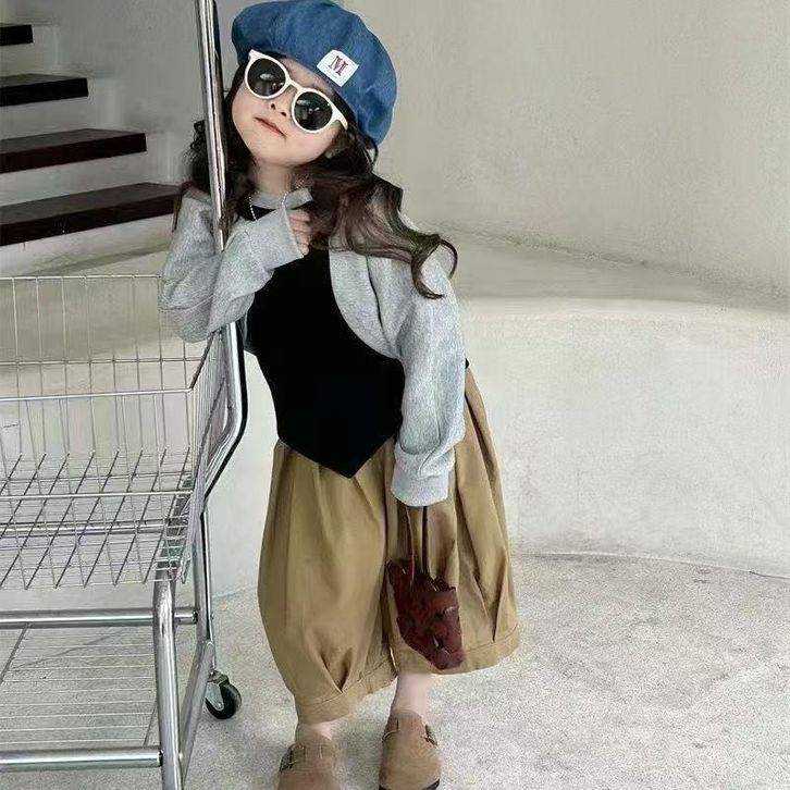 Korea Style Setelan Anak Perempuan Atasan Lengan Panjang Nyatu Atasan+Celana Kulot Bahan Katun Baju Anak Perempuan