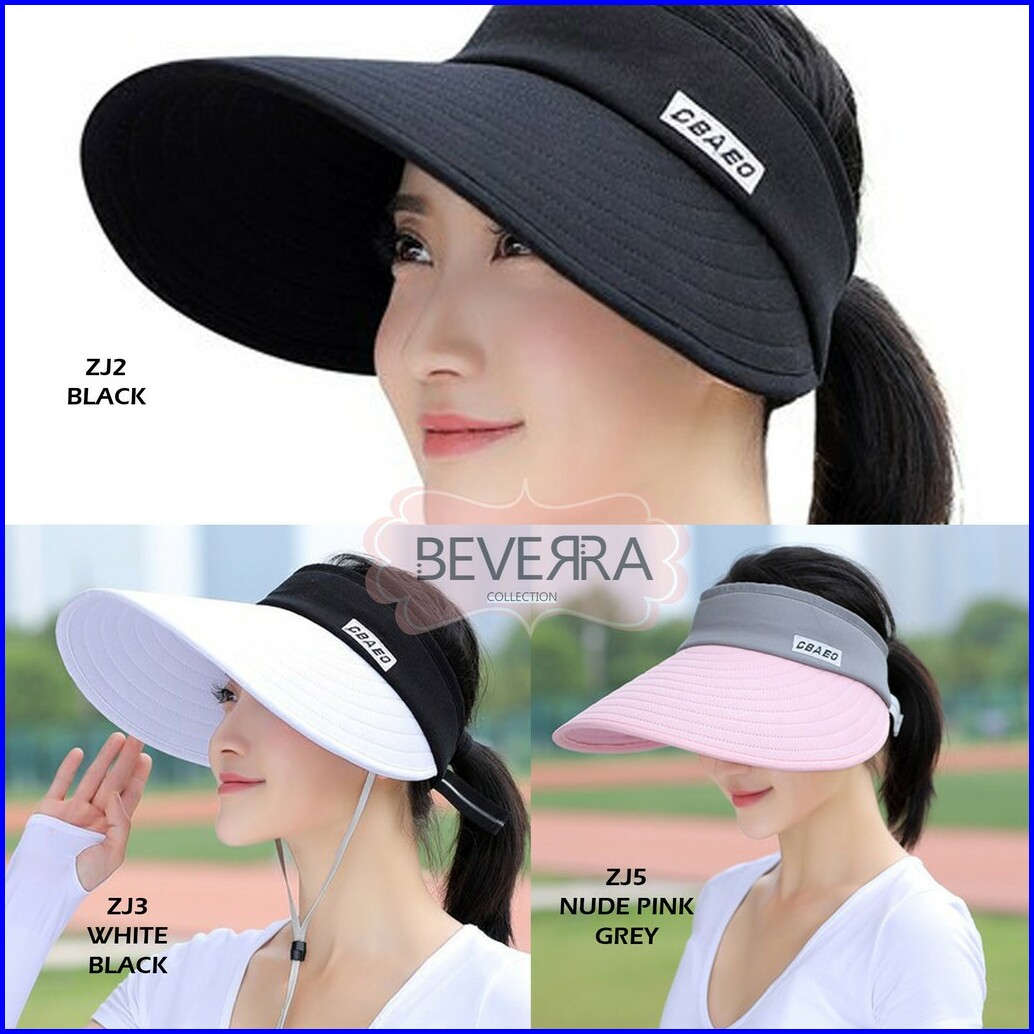 Topi Pantai Visor Golf Outdoor Pelindung Lebar Lipat Anti Uv Matahari Wanita Zj Topi Pantai Wanita