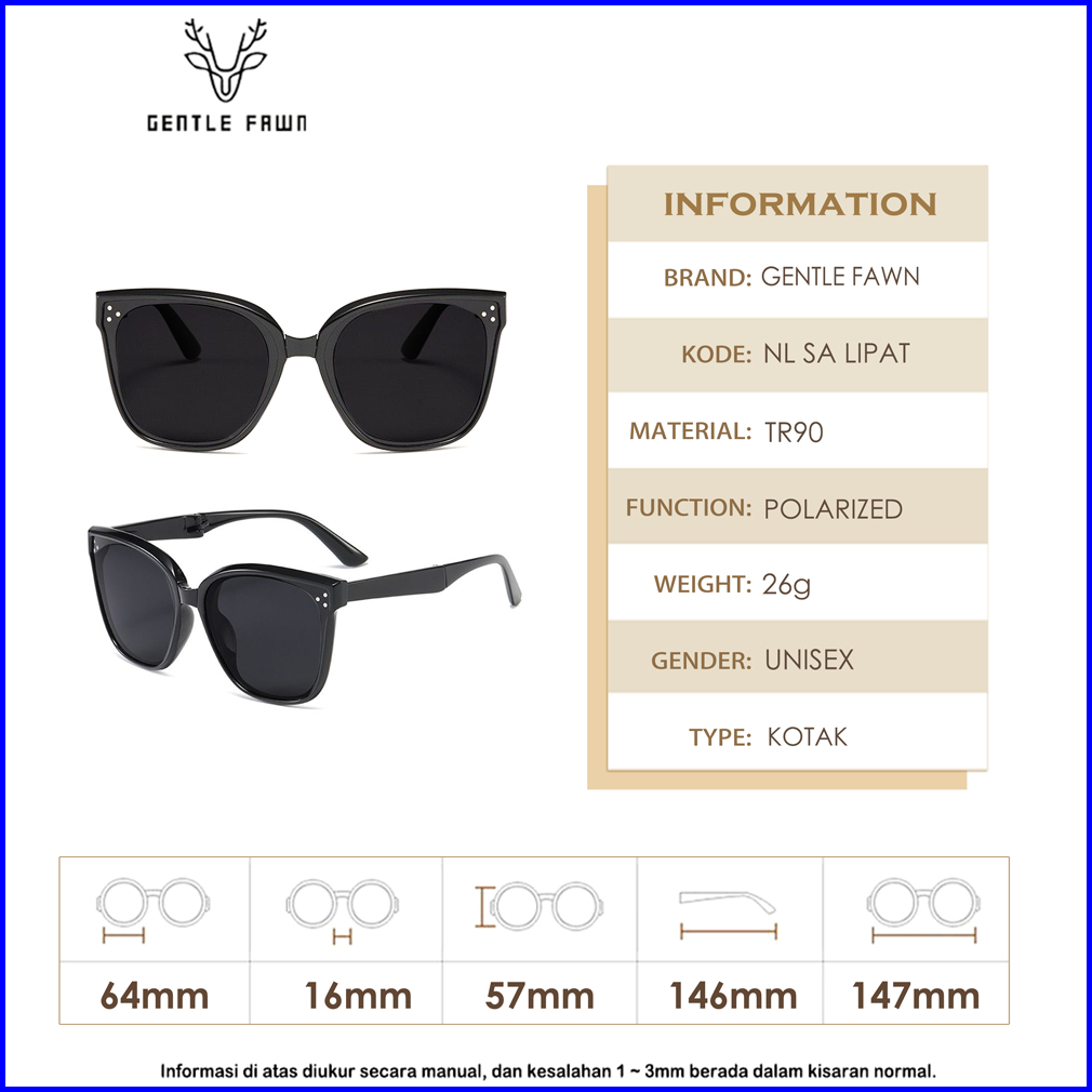 Gentle Fawn Sunglasses Kacamata Hitam Lipat Foldable Anti Uv Protection Terbaru Korean Style Luxury Sunglasses Fashion P