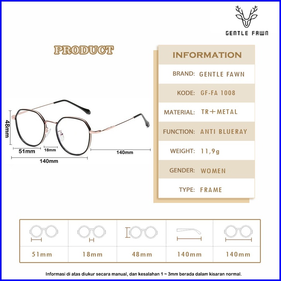 Gentle Fawn Kacamata Antiradiasi Blueray Tr Metal Kotak Geometri Trendy Fashion Wanita Bisa Minus Photocromic Bluecromic