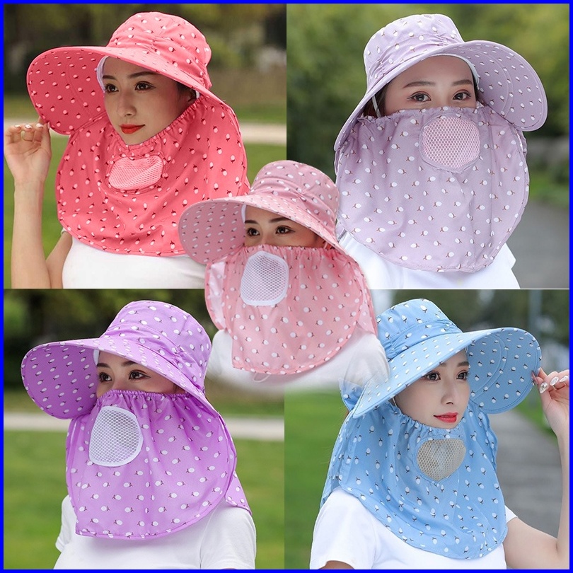 Topi Pantai Visor Lipat Wanita Lebar Topi Pantai Cadar Penutup Wajah Anit Uv Zu