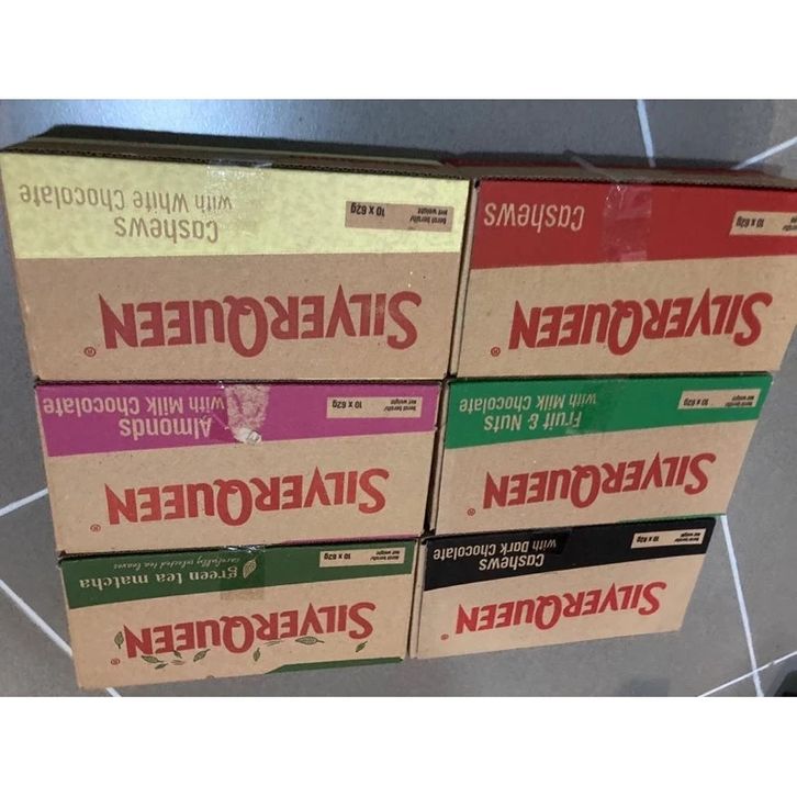 Silverqueen Mede/Almond/Fruitnut/Dark/White/Crisypy/Greentea 55/ 58 gr 1 box (isi 10 pcs) - GRATIS ONGKIR