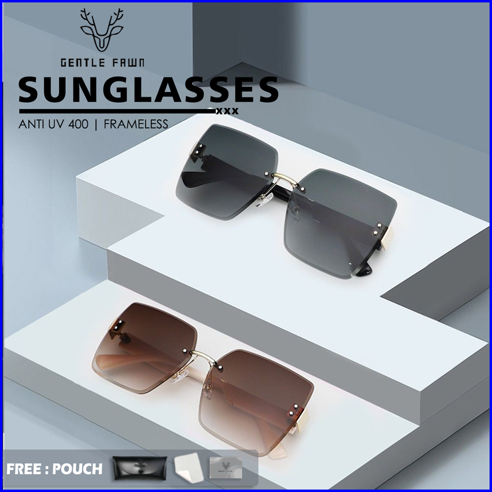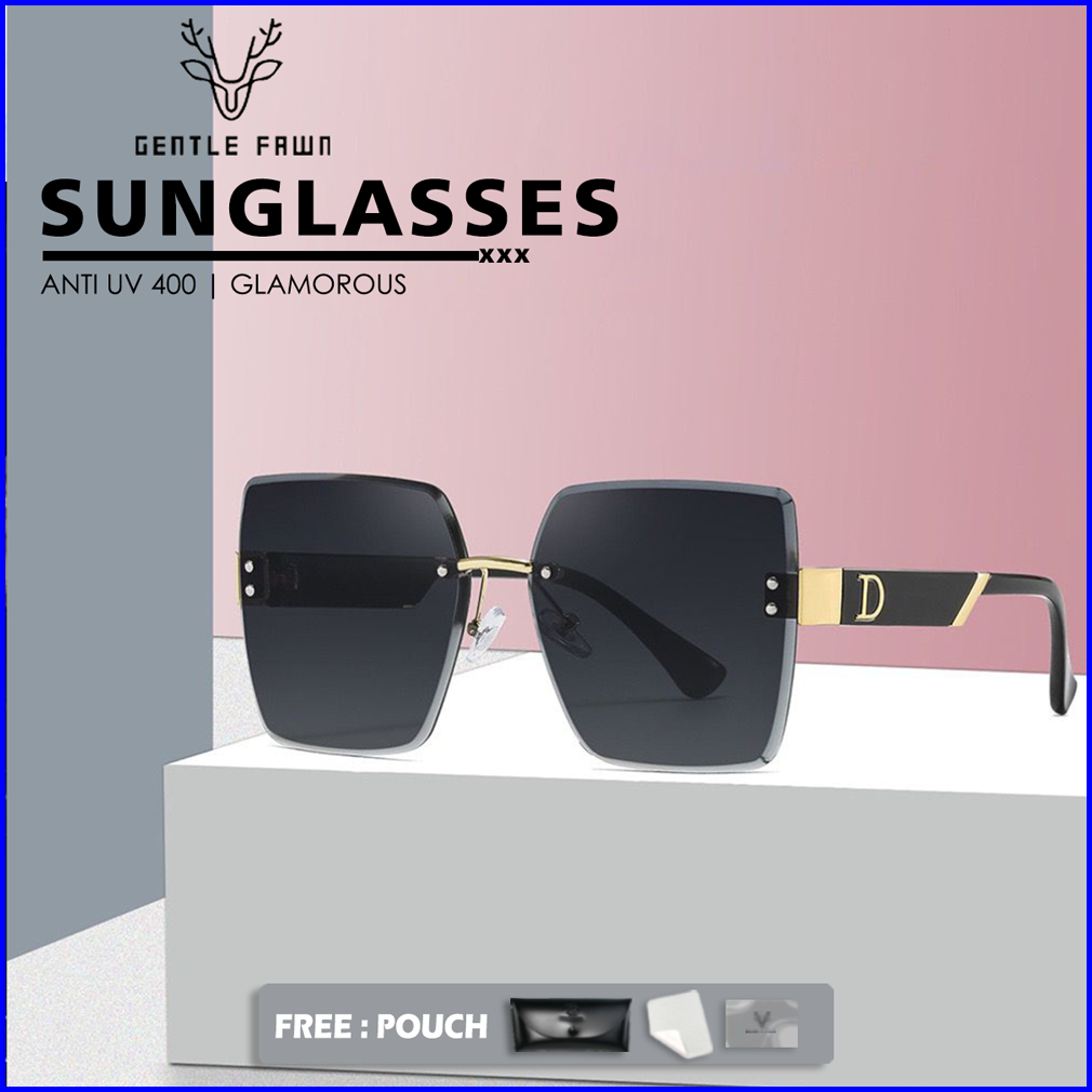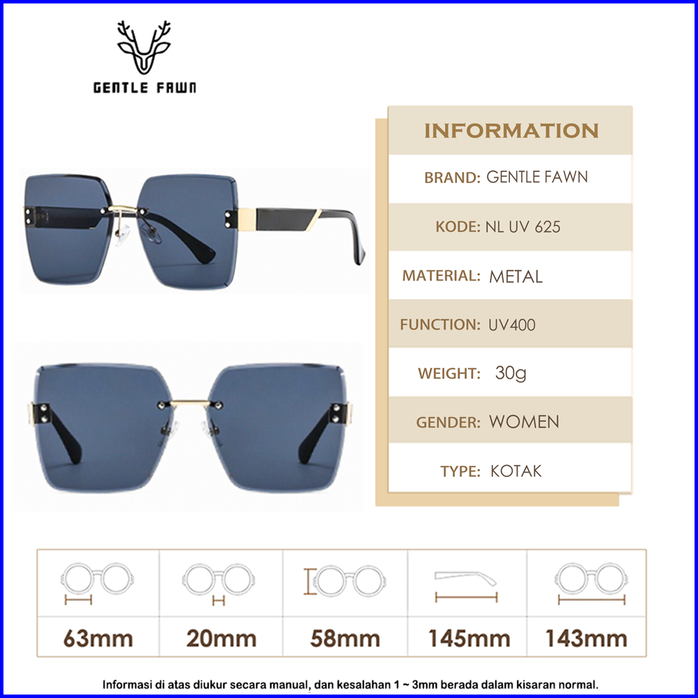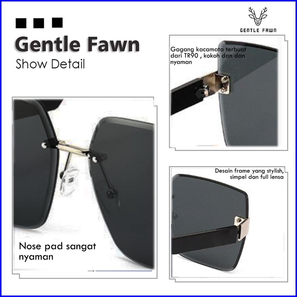 Gentle Fawn Kacamata Sunglasses Hitam Anti Uv Oversized Korean Style Keren Wanita Bentuk Kotak Bahan Metal 625