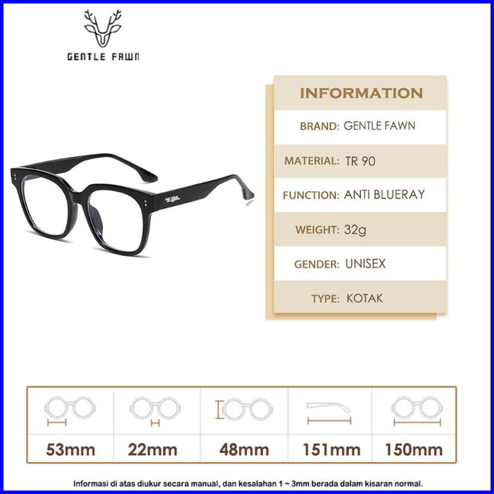 Gentle Fawn Kacamata Anti Radiasi Blueray Fashion Pria Wanita Bisa Minus Bentuk Kotak Ringan Tr90 325