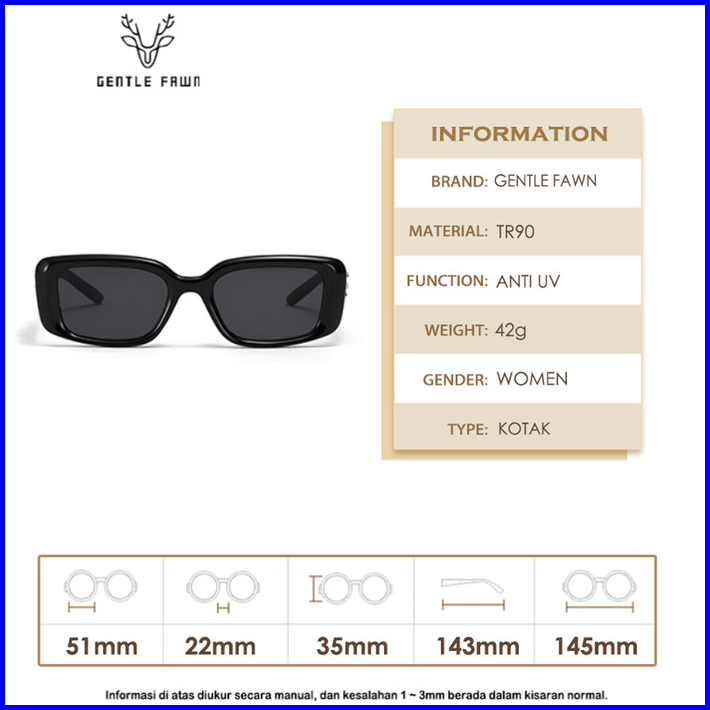 Gentle Fawn Kacamata Hitam Sunglasses Anti Uv 400 Fashion Wanita Korean Style Ringan Bentuk Kotak Tr 19308