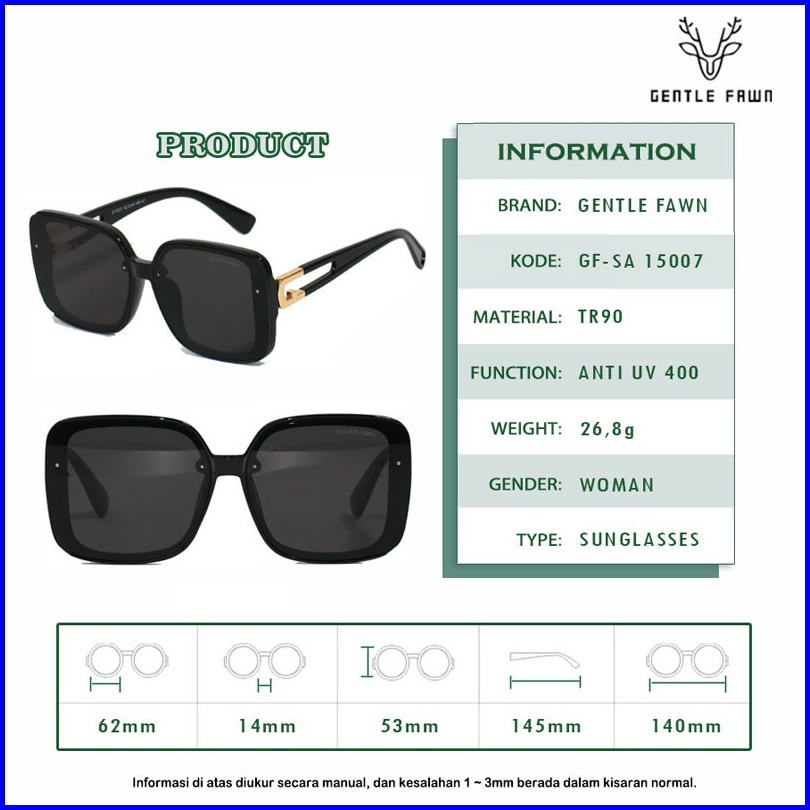 Gentle Fawn Sunglasses Kacamata Hitam Kotak Oversized New Fashion Style Wanita Kekinian Anti Uv Anti Silau 15007