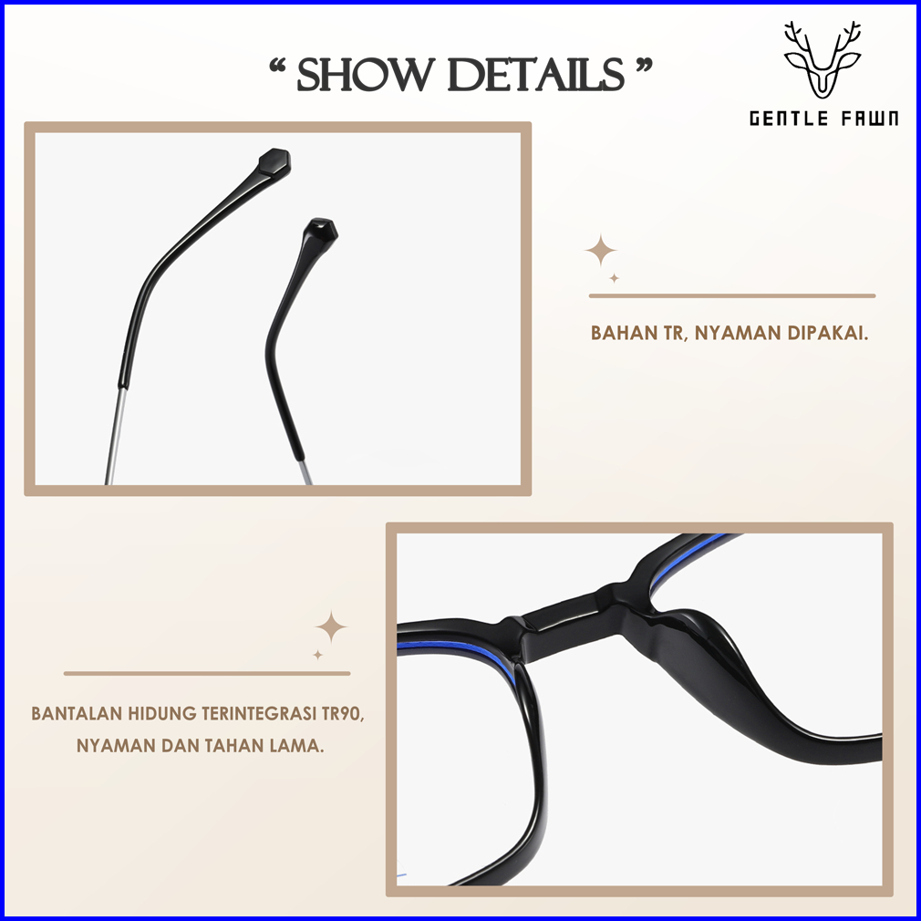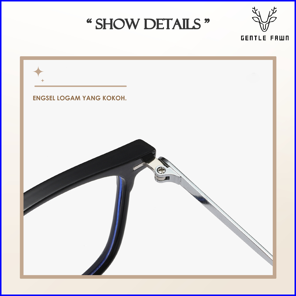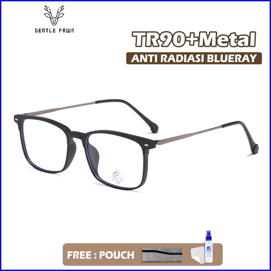 Gentle Fawn Kacamata Antiradiasi Blueray Style Tebaru Kotak Tr90 Metal Bisa Minus Frame Design Simple Fashion Wanita Dan
