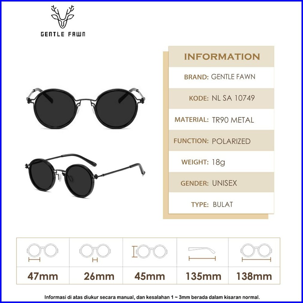 Gentle Fawn Kacamata Sunglasses Polarized Model Bulat Retro Trendi Alloy Tr Vintage Style Fashion Pria Dan Wanita 10749