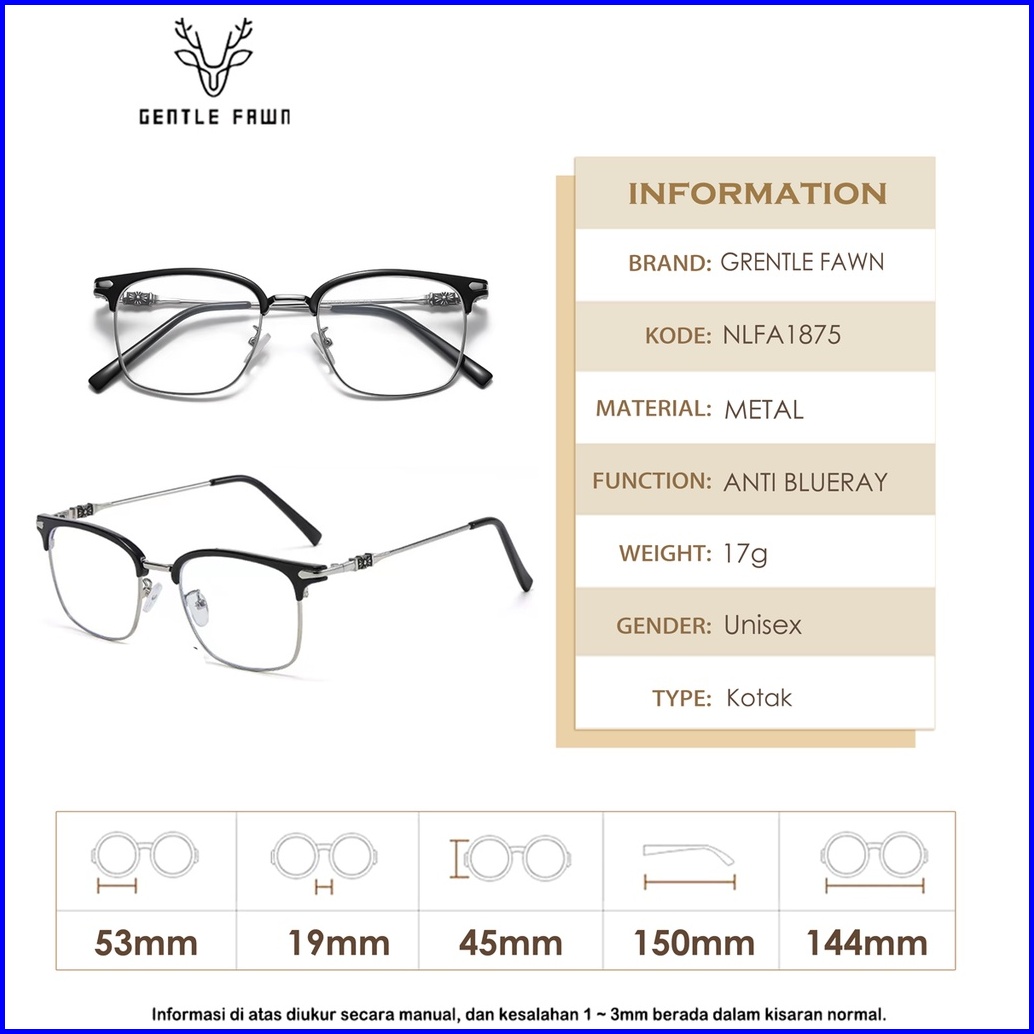 Gentle Fawn Kacamata Antiradiasi Blueray Style Kotak Terbaru Tr90 Metal Kotak Fashion Wanita Dan Pria 1875