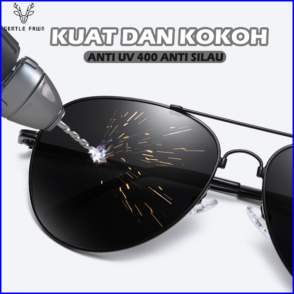Gentle Fawn Kacamata Hitam Sunglasses Polarized Anti Silau Uv 400 Anti Silau Style Pria Bentuk Aviator Logam Memori Meta
