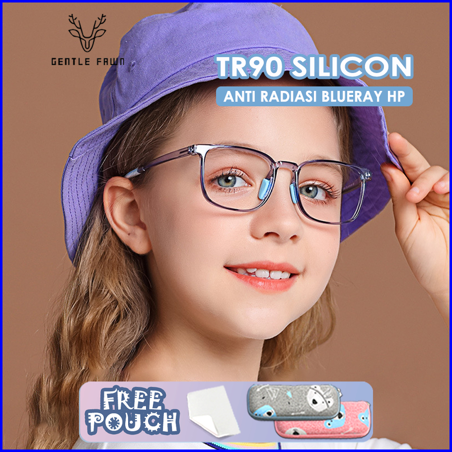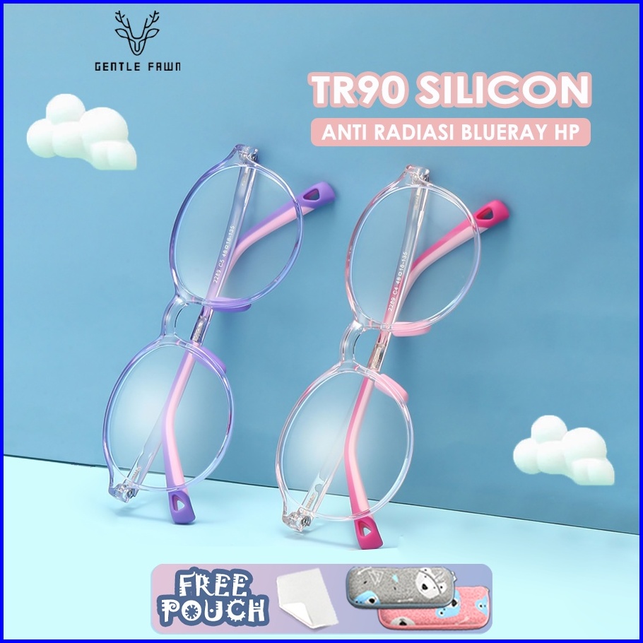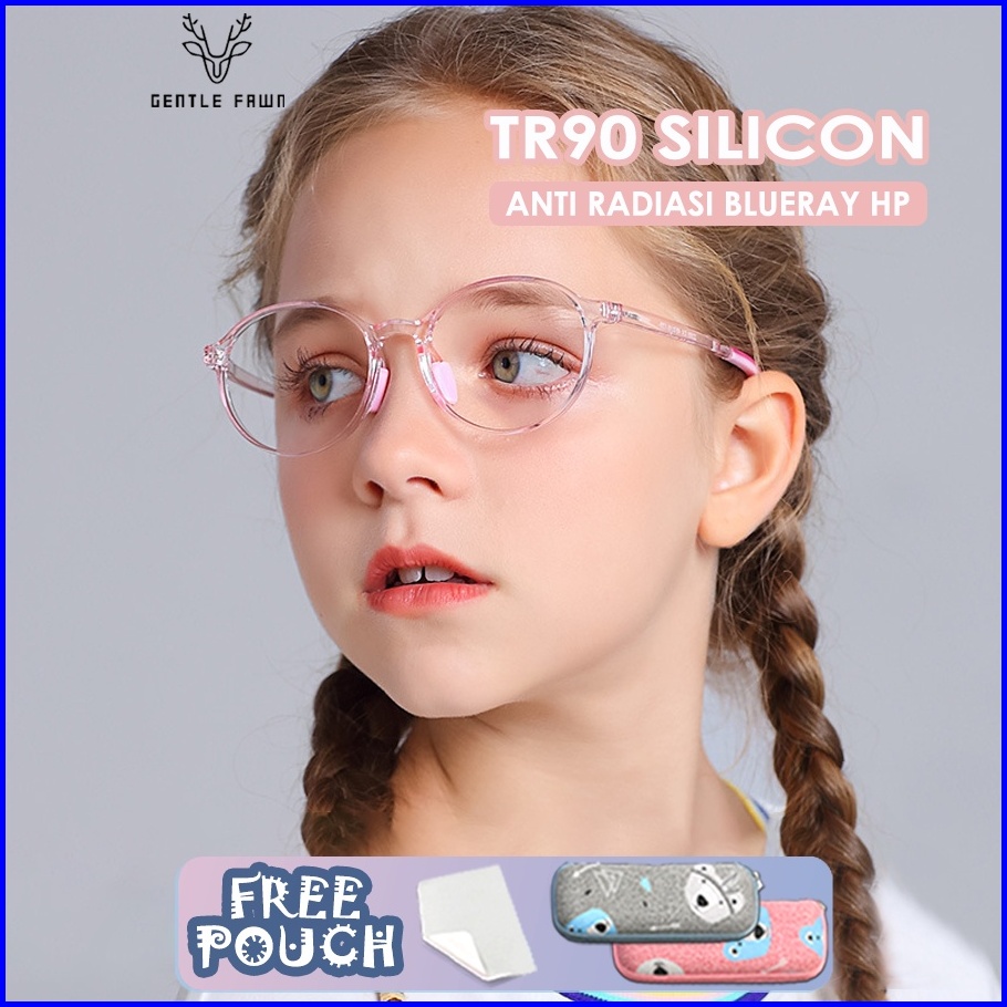 Gentle Fawn Kacamata Anak Anti Radiasi Blueray Komputer Hp Tv Anti Uv Tr90 Silicon Gel Lentur Bulat Oval Unisex Anak Per