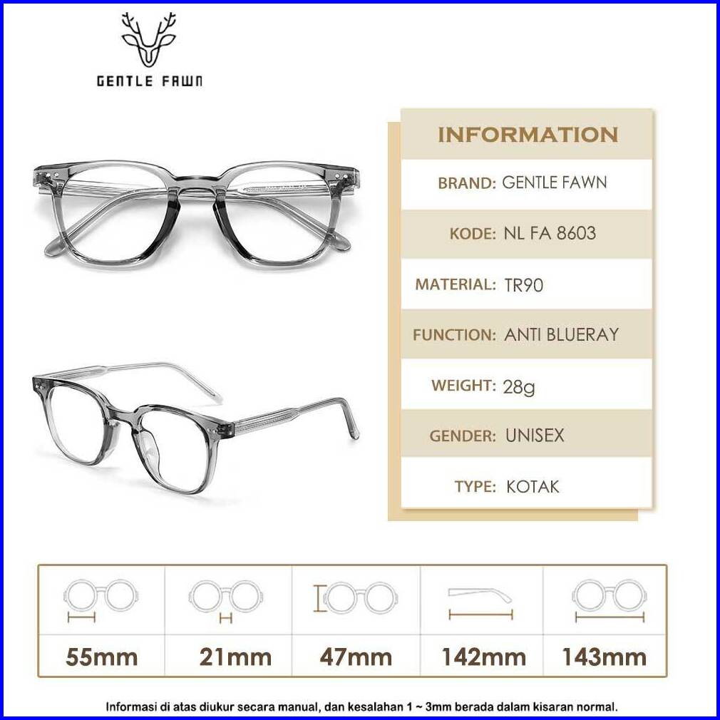 Gentle Fawn Kacamata Antiradiasi Blueray Sinar Biru Bentuk Kotak Bahan Tr90 Kombinasi Acetate Fashion Pria Wanita Bisa M