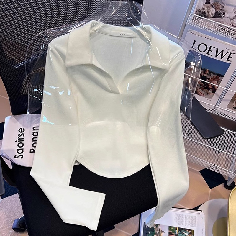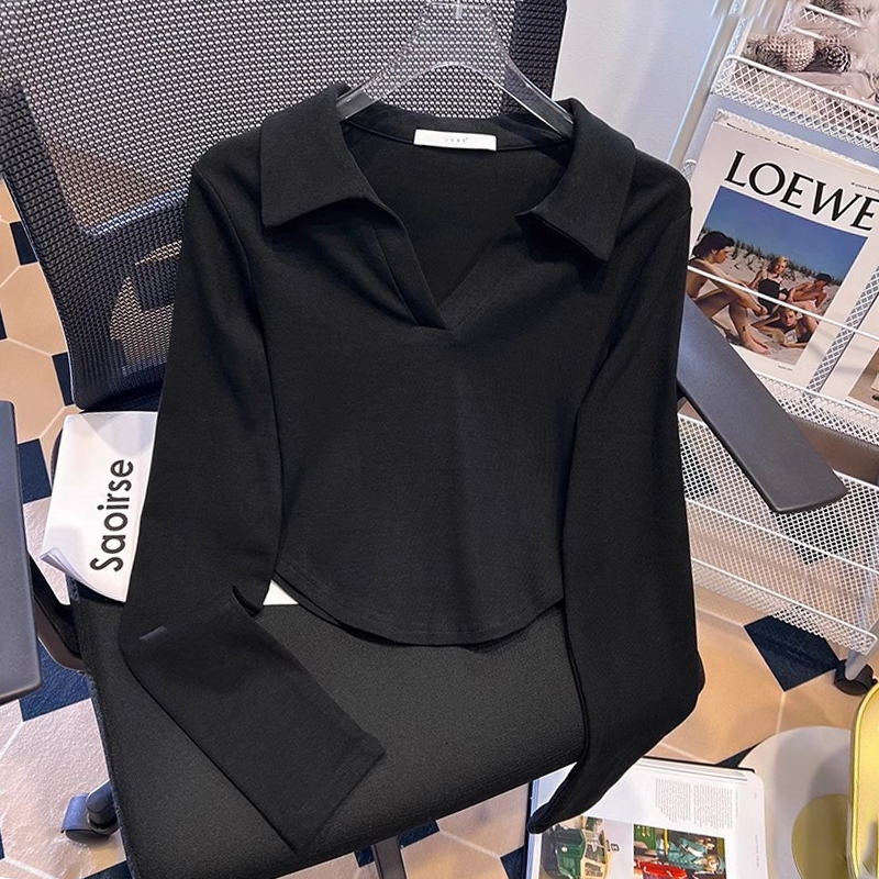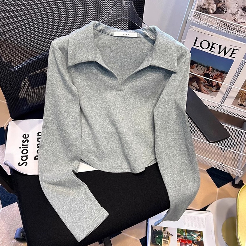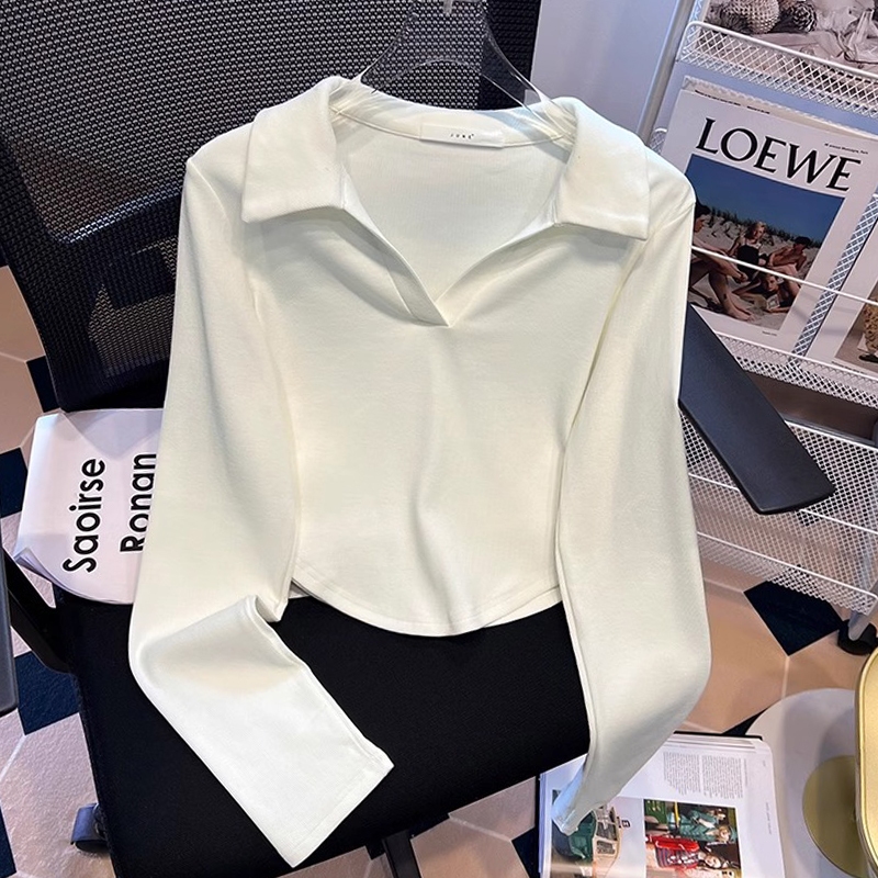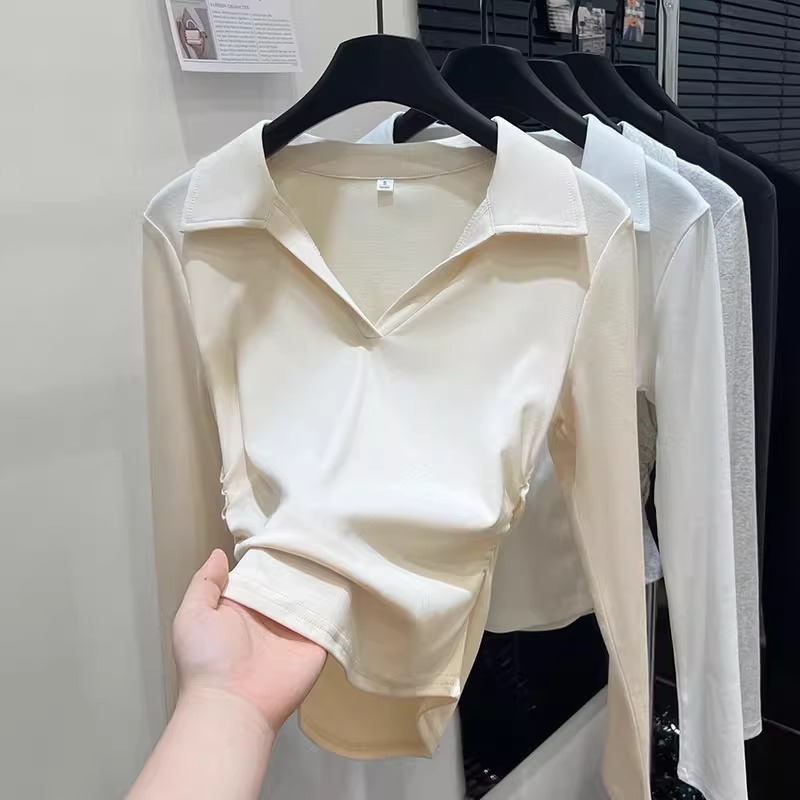Kaos Polo Kerah Lengan Panjang Terbaru / crop top korea lengan panjang / T-shirt slim fit lipit yang bergaya