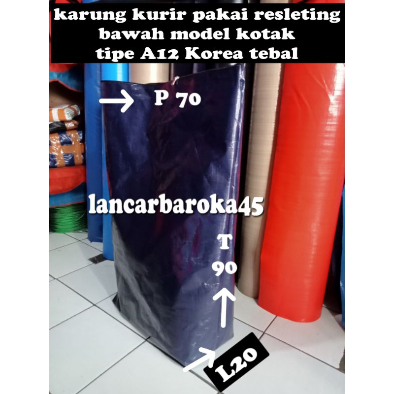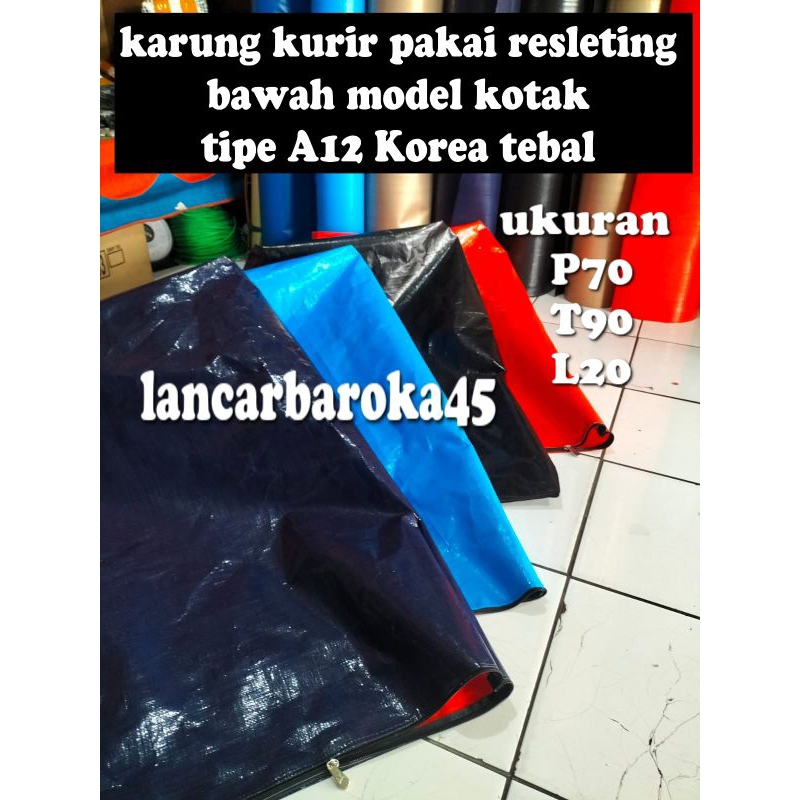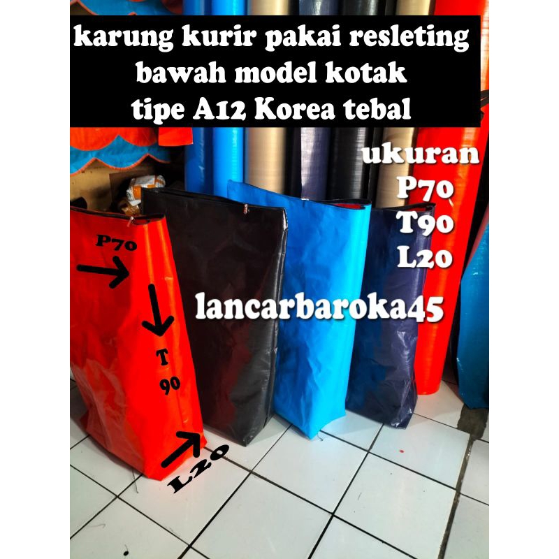 karung kurir pakai resleting bawah model kotak P70 T90 L20 bahan tipe A12 Korea tebal merek oriental kualitas terjamin