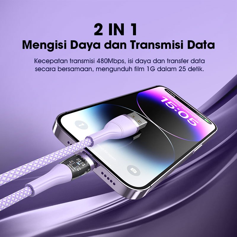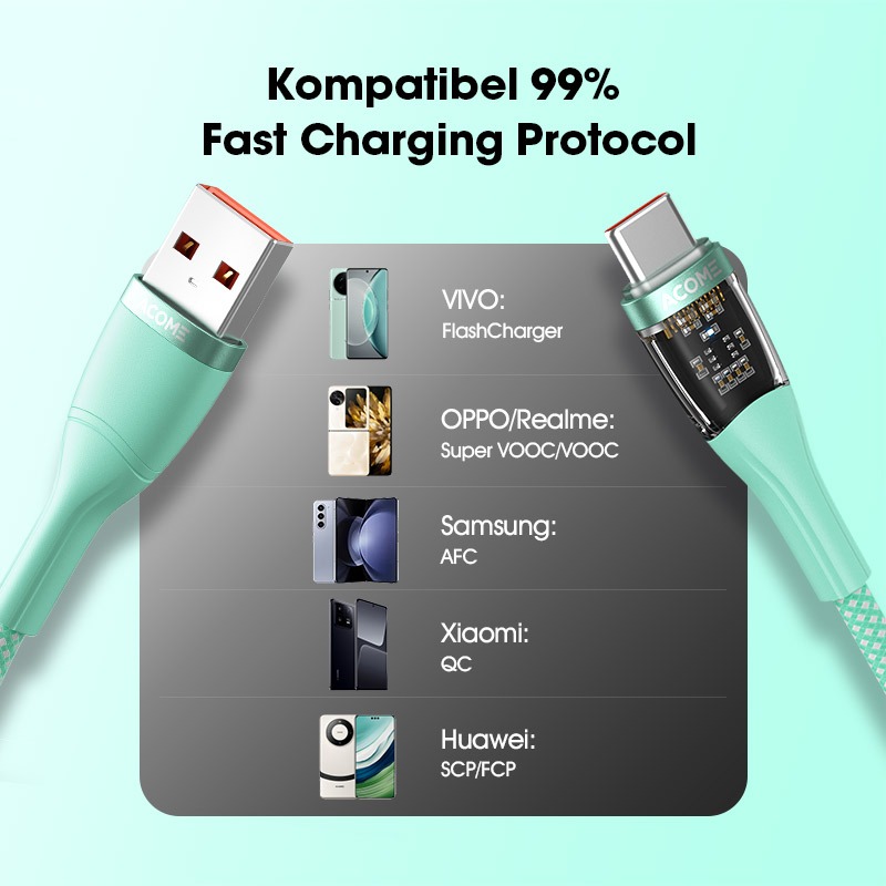 ( PROMO )ACOME Kabel Data Charger Transparan 100cm Type-C Lightning Micro Fast Charging 66W Seri AT100 Original