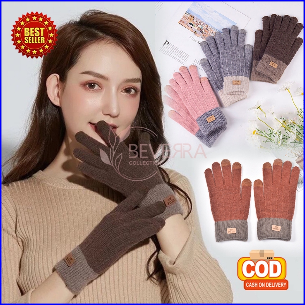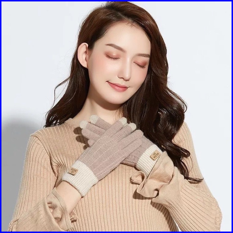 Sarung Tangan Winter Wanita Musim Dingin Touch Screen Rajut Wool Tebal Gloves Motor Unisex Fna