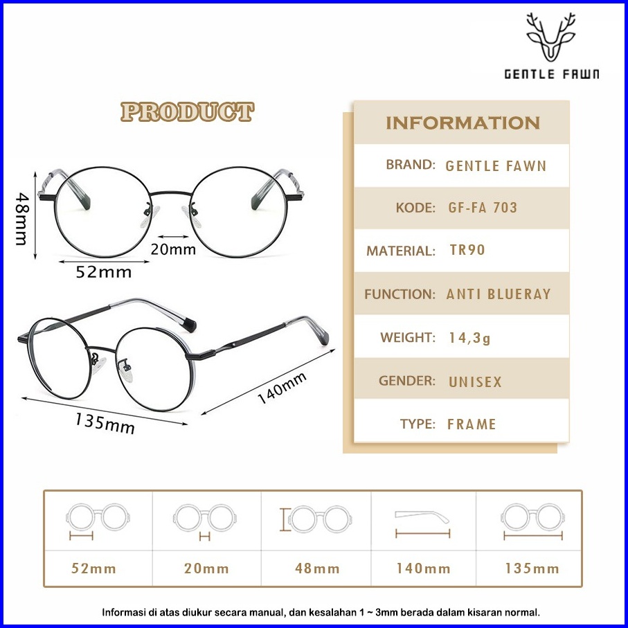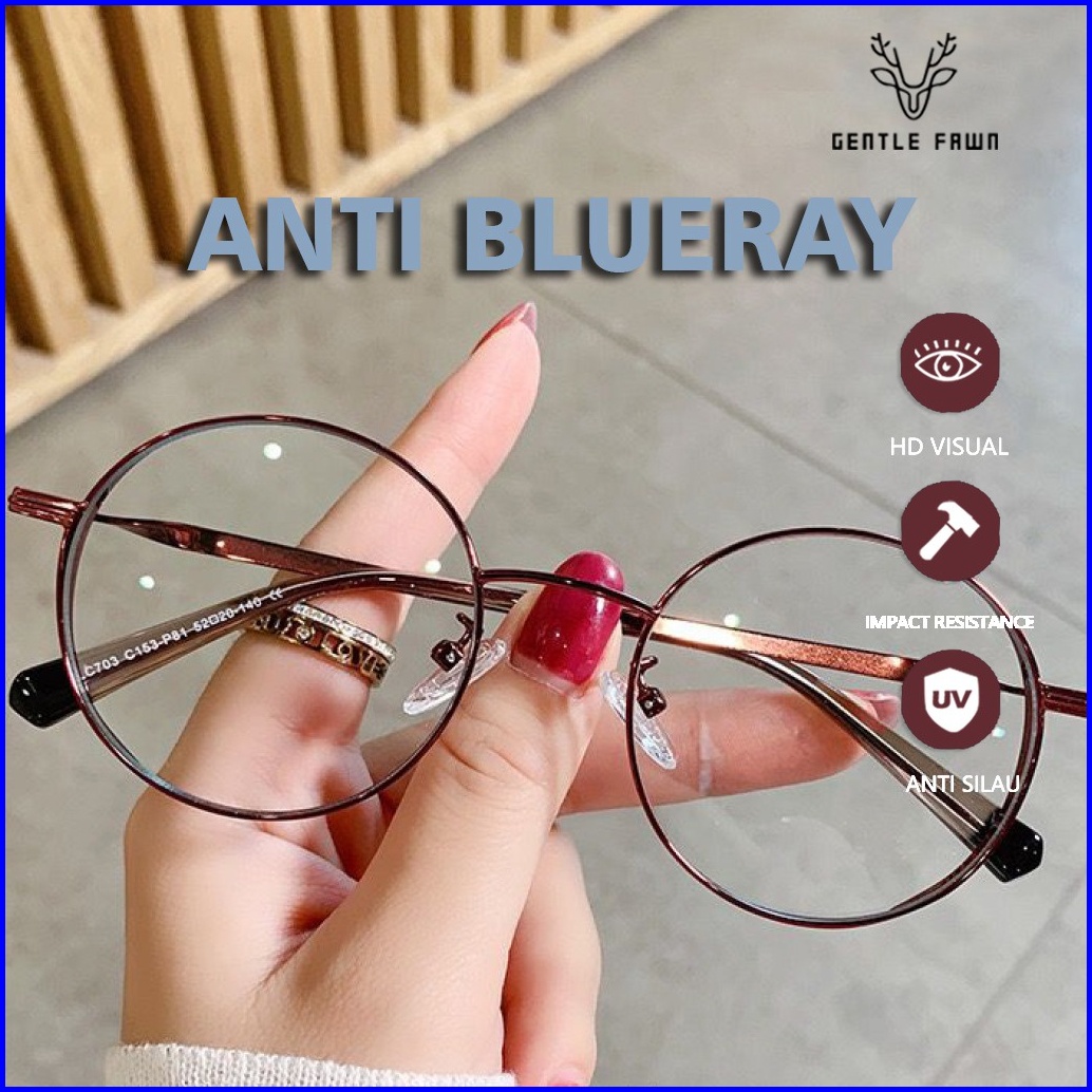 Gentle Fawn Kacamata Antiradiasi Blueray Bahan Metal Tr90 Korean Style Oval Bisa Minus Fashion Unisex Terbaru 703