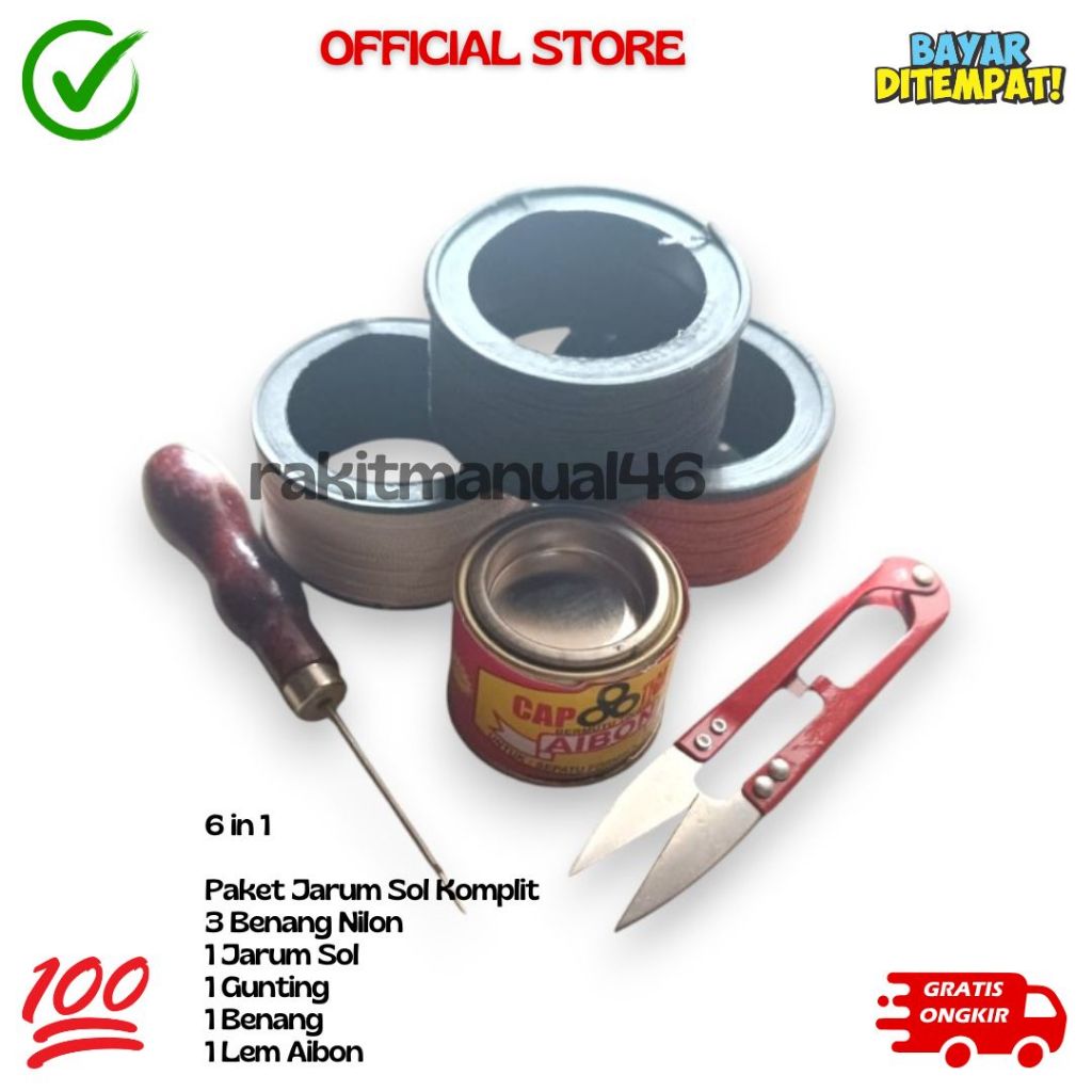 Paket Benang Nilon Sol Sepatu + Sol Sepatu Original + Benang + Lem Aibon C
