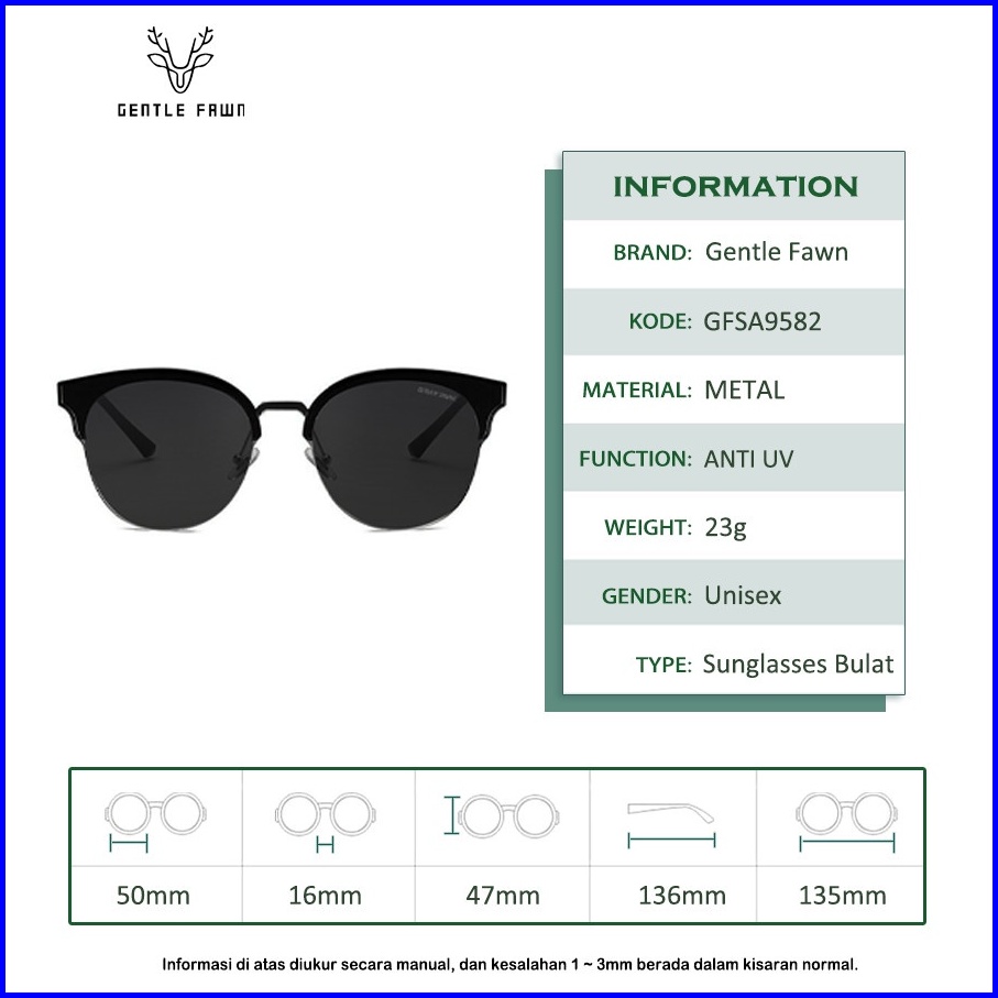 Gentle Fawn Sunglasses Kacamata Hitam Anti Uv Tr90 Metal New Style Retro Metal Model Klasik Fashion Pria Dan Wanita 9582