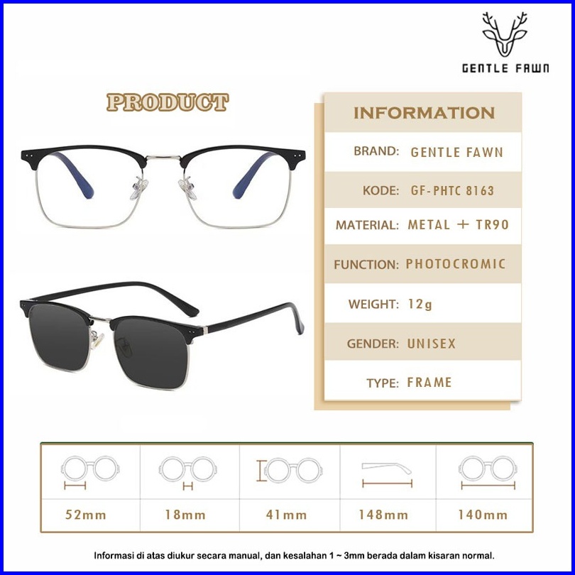 Gentle Fawn Kacamata Antiradiasi Blueray Photocromic Design Kekinian Fashion Pria Dan Wanita Terbaru Bisa Minus 8163