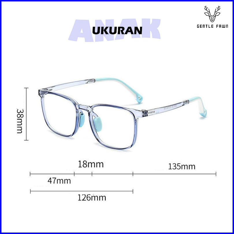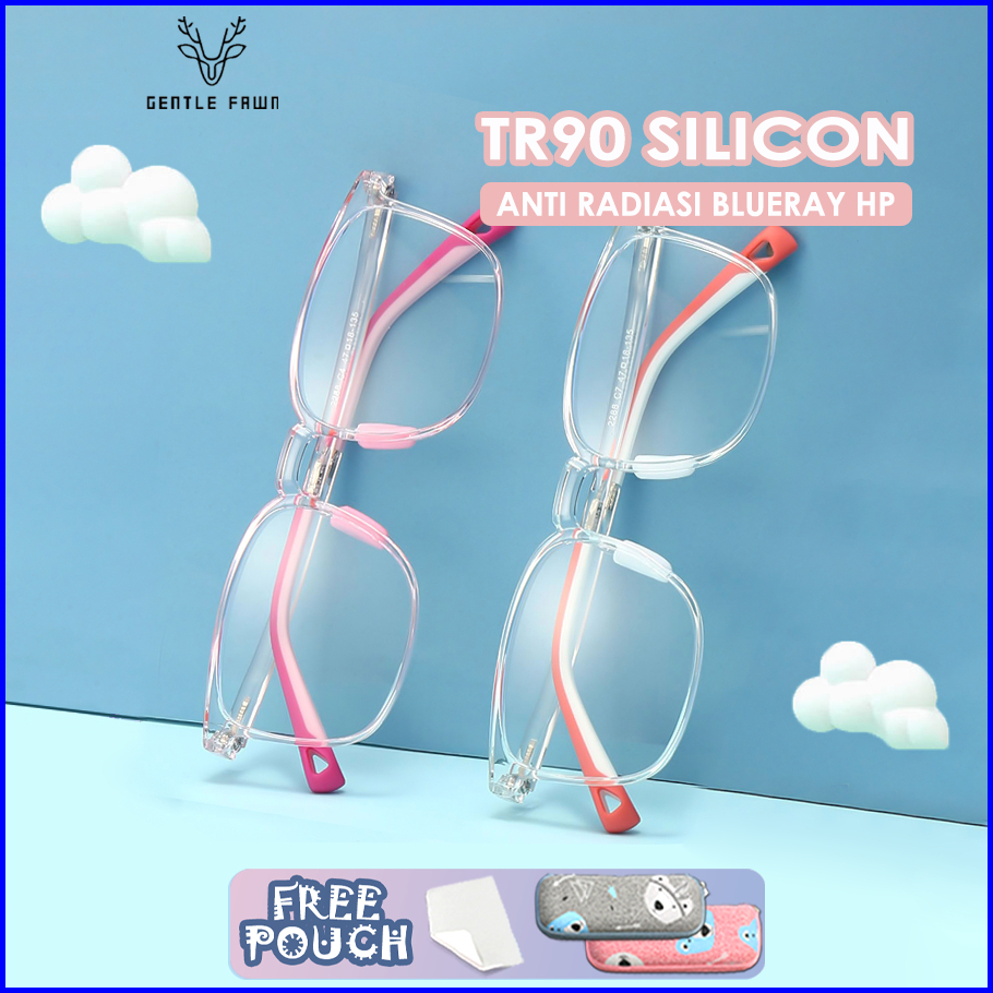 Gentle Fawn Kacamata Anak Anti Radiasi Blueray Komputer Hp Tv Anti Uv Tr90 Silicon Gel Lentur Kotak Unisex Anak Perempua
