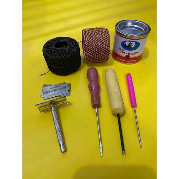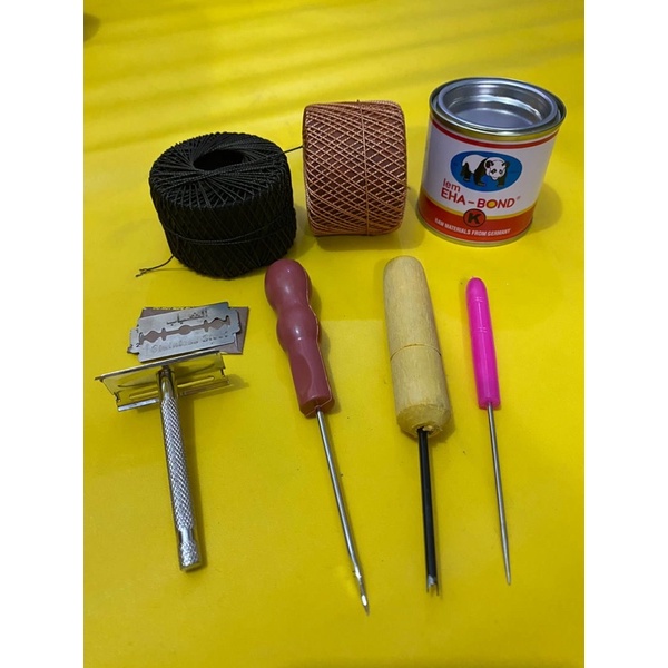 PAKET ALAT SOL SEPATU / 2 roll benang nilon sol sepatu / penyayat susruk sol / sol sepatu / pendedel sol