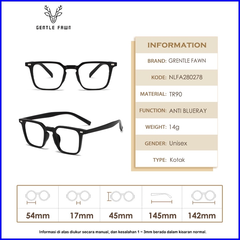 Gentle Fawn Kacamata Antiradiasi Blueray Anti Uv Kotak Style Bisa Minus Tr90 Lentur Fashion Pria Dan Wanita 280278