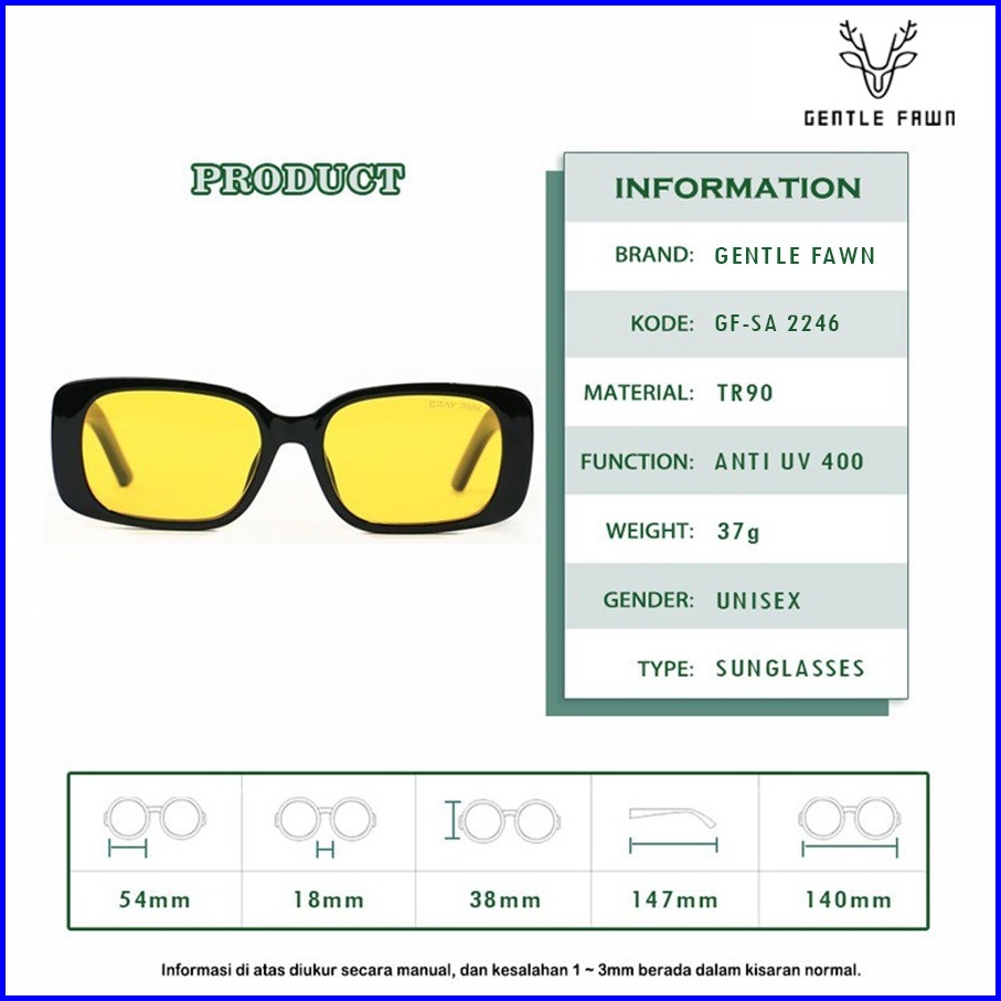 Gentle Fawn Sunglasses Kacamata Hitam Anti Uv Anti Silau Style Korea Model Kotak Oversized Fashion Wanita 2246 19308 193