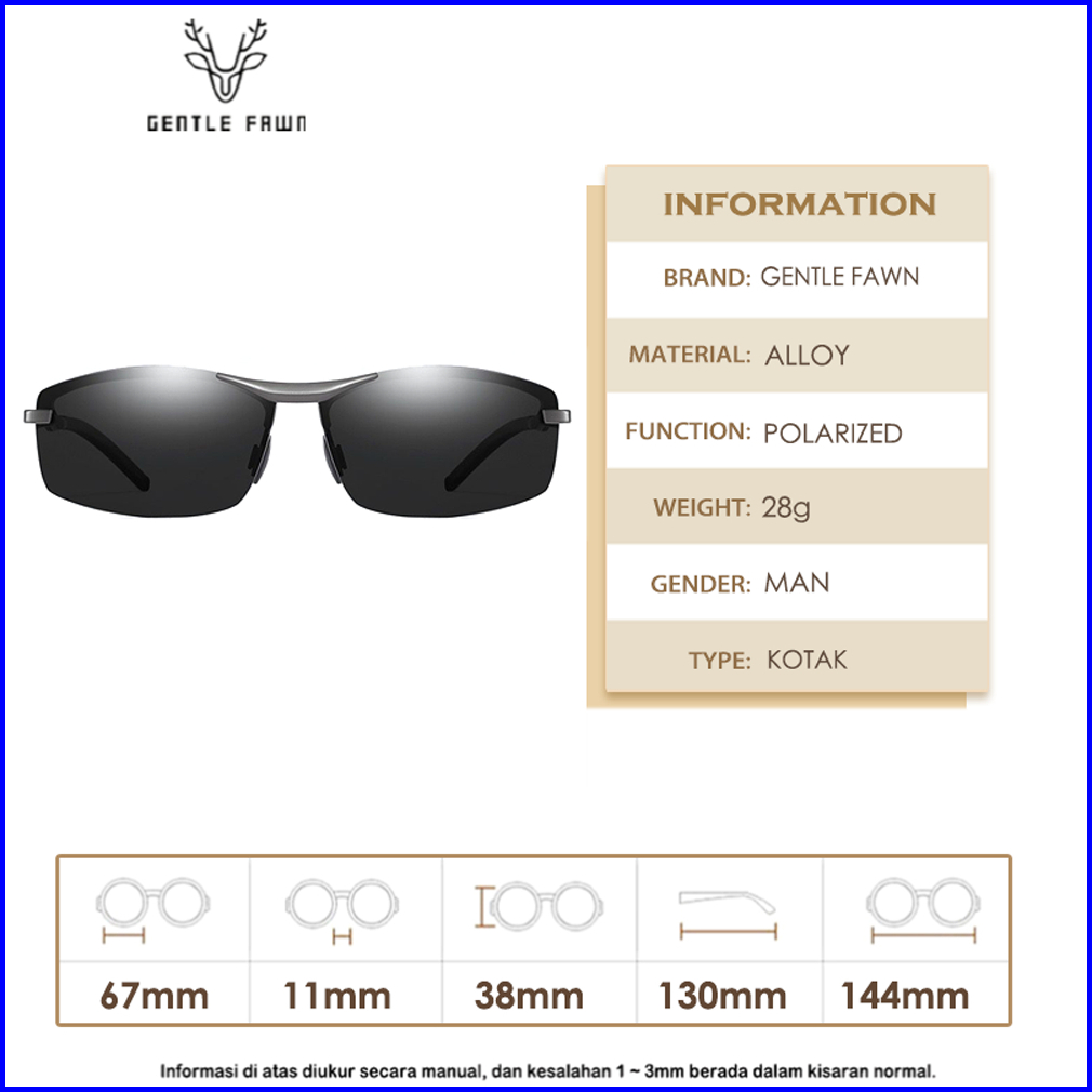Gentle Fawn Kacamata Sunglasses Polarized Anti Silau 400 Fashion Elegant Pria Bentuk Kotak Oversized Alloy Kuat Keren 55