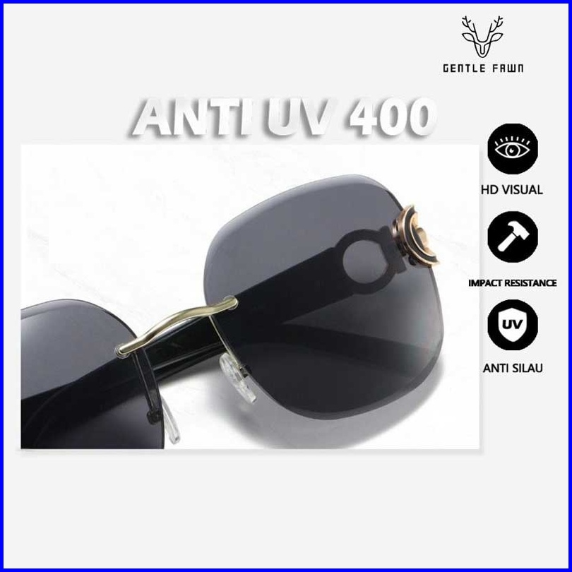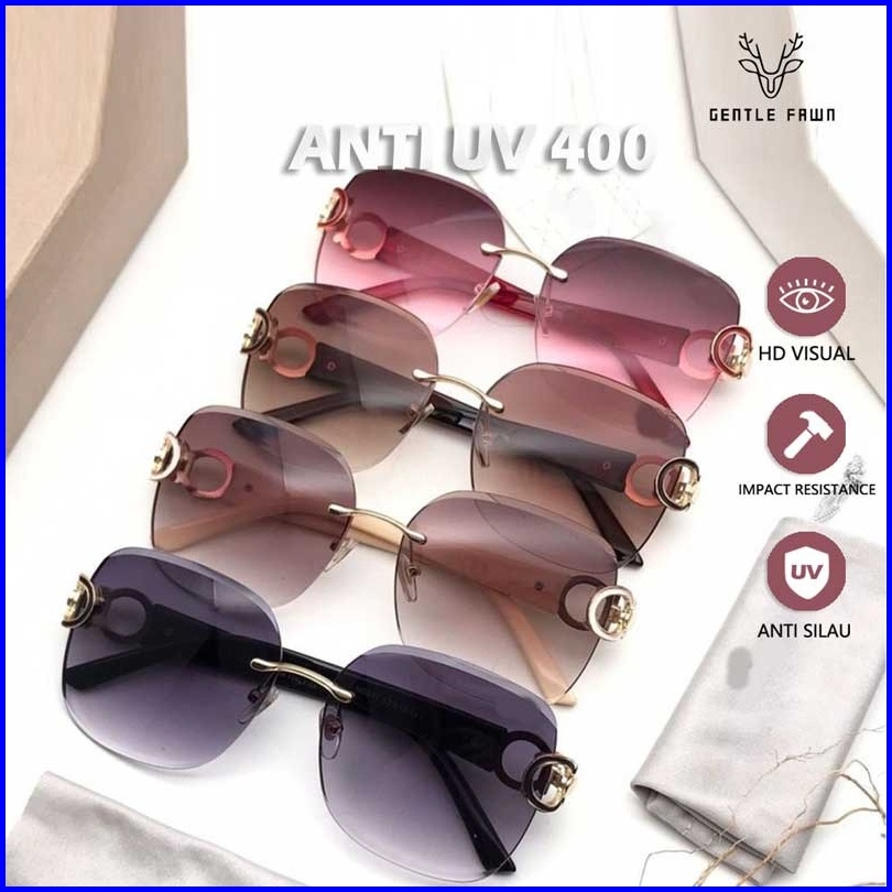 Gentle Fawn Kacamata Hitam Anti Uv 400 Metal Tr90 Style Wanita Glamour Modis Rimless Ringan Kekinian New 2253x