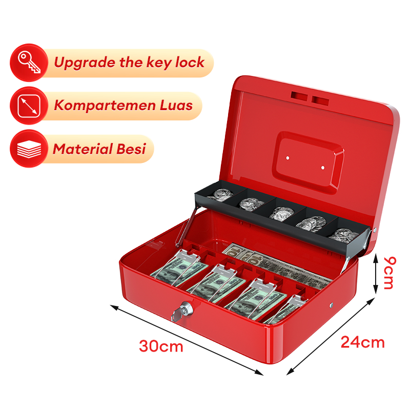 GERATUS ONGKIR Kotak Uang Kasir Portable Brangkas Cash Box Money Box Safety With Lock Security Compartment