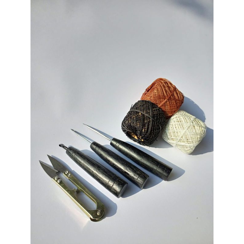 Peralatan sol sepatu lengkap set sol penusuk susruk Tarek benang & 3 benang nilon coklat putih hitam