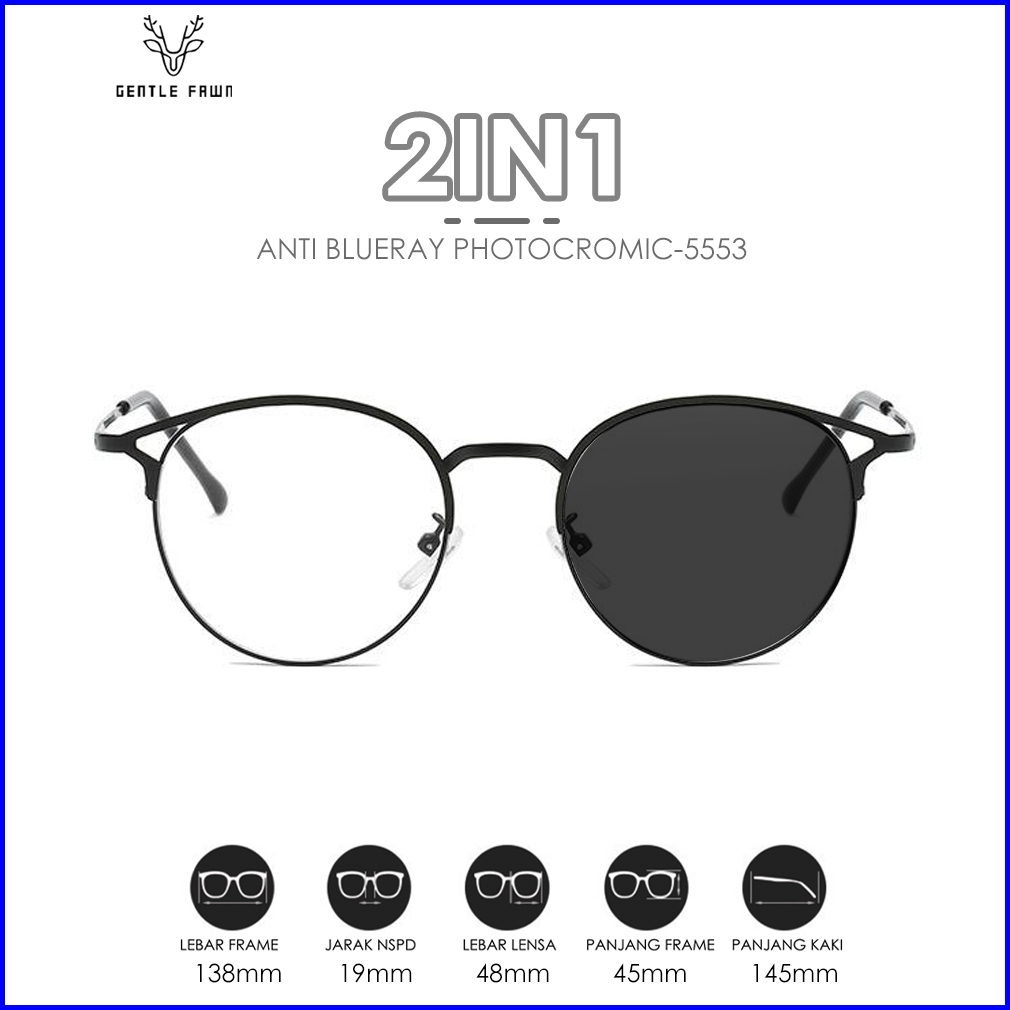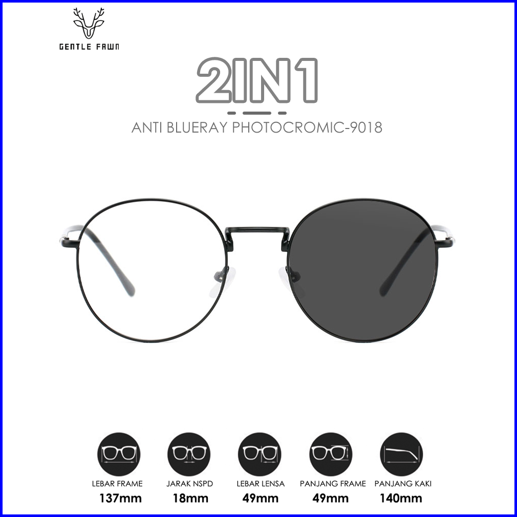 Gentle Fawn Kacamata Anti Radiasi Blueray Photocromic 2in1 Anti Uv Fashion Style Bulat Kotak Oval Half Frame Pria Dan Wn