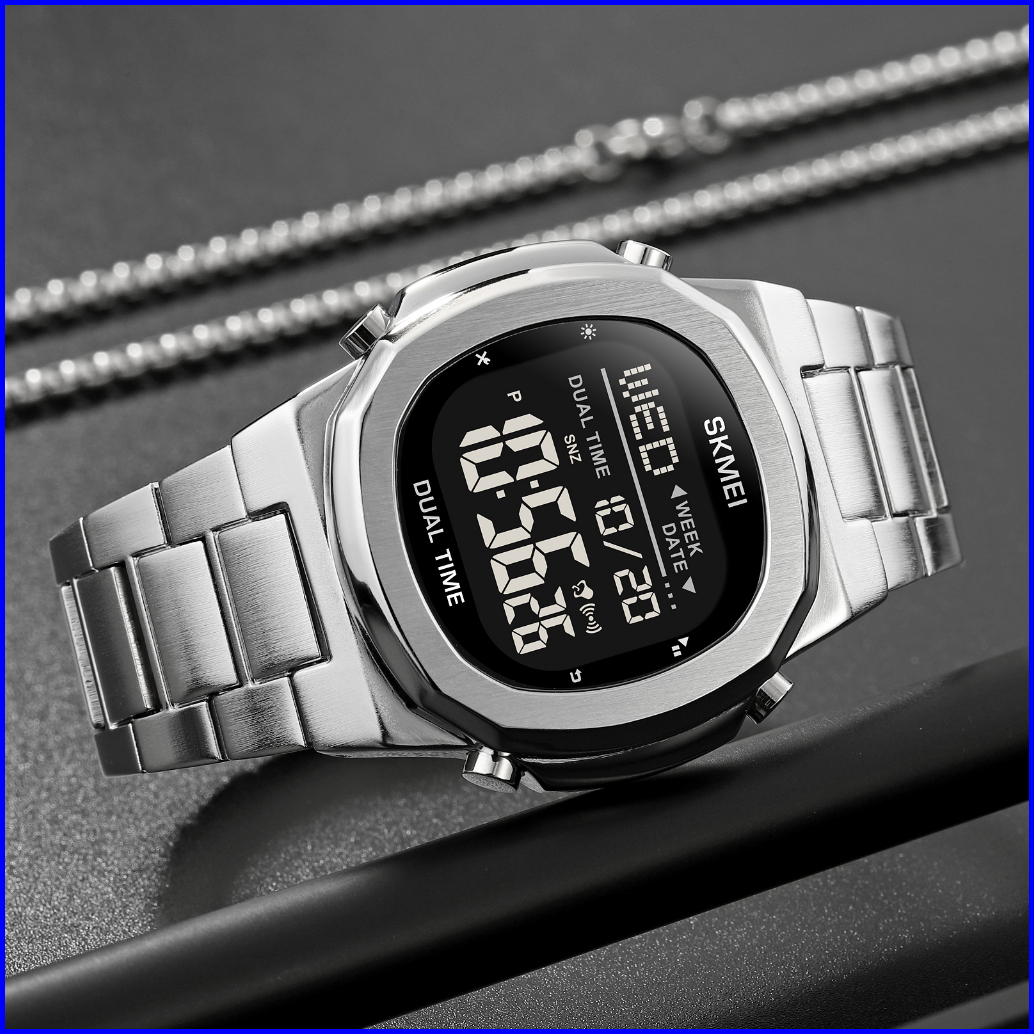 Skmei 2004 Jam Tangan Pria Digital Tali Stainless Rantai Mgos