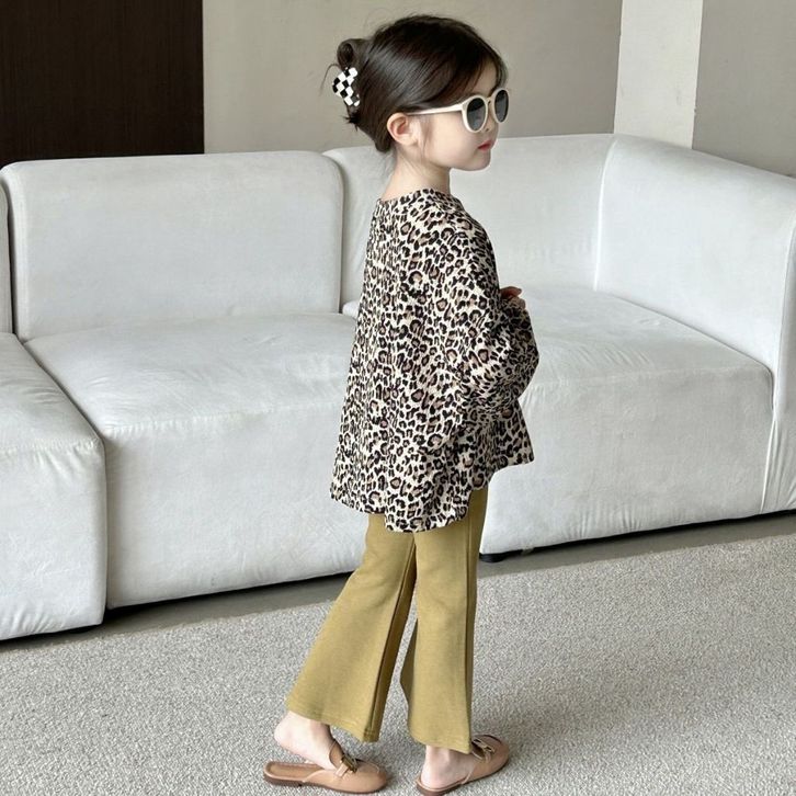 Loli-JKT Bs- 676 Setelan Anak Blouse Motif Leopard Tutul Celana Cutbray Size 100-140