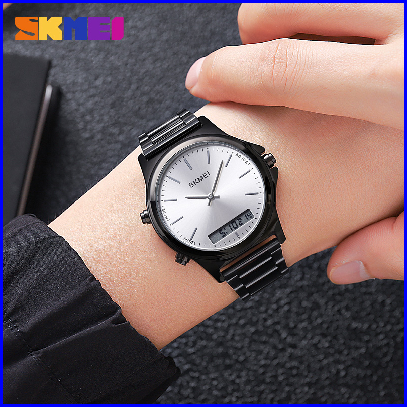 Skmei 2120 Jam Tangan Pria Digital Analog Tali Stenlis Sport Watch Mgos