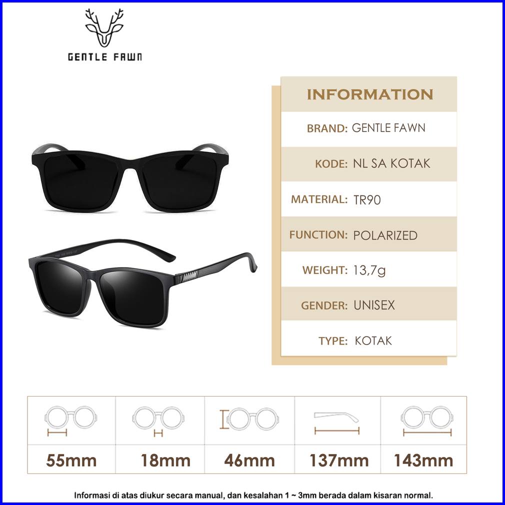Gentle Fawn Kacamata Hitam Sunglasses Bentuk Kotak Polarized Bahan Tr90 Anti Silau Anti Uv400 Fashion Pria Ringan Dan Te
