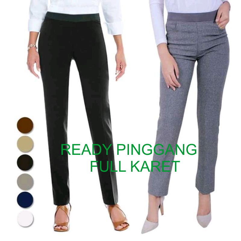 CELANA KANTOR FORMAL KERJA WANITA SLIMFIT BAHAN DASAR KAIN . SIZE S-5L Kantong Hitam Navy Abu Putih Skinny Variasi Panja
