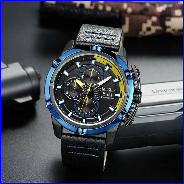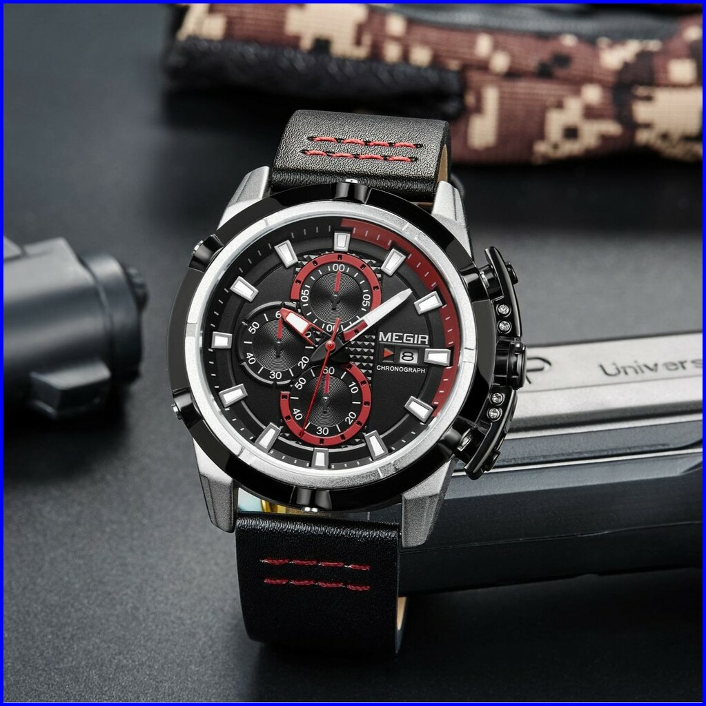 Megir 2062 Jam Tangan Pria Analog Chronograph Tanggal Aktif Tali Kulit Mgos