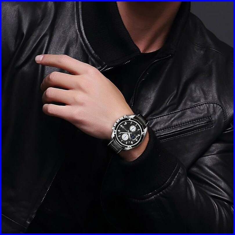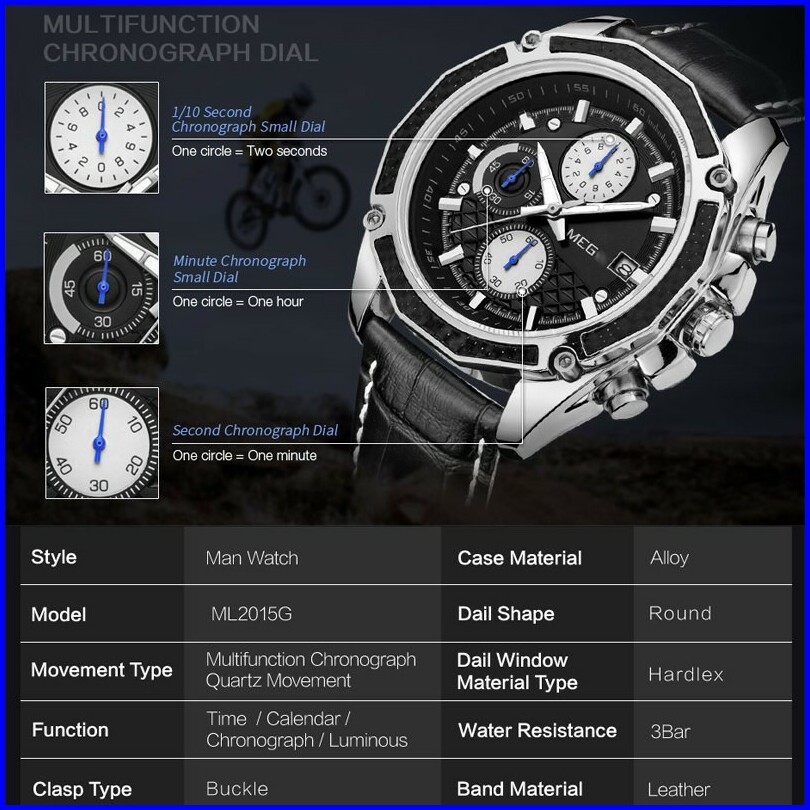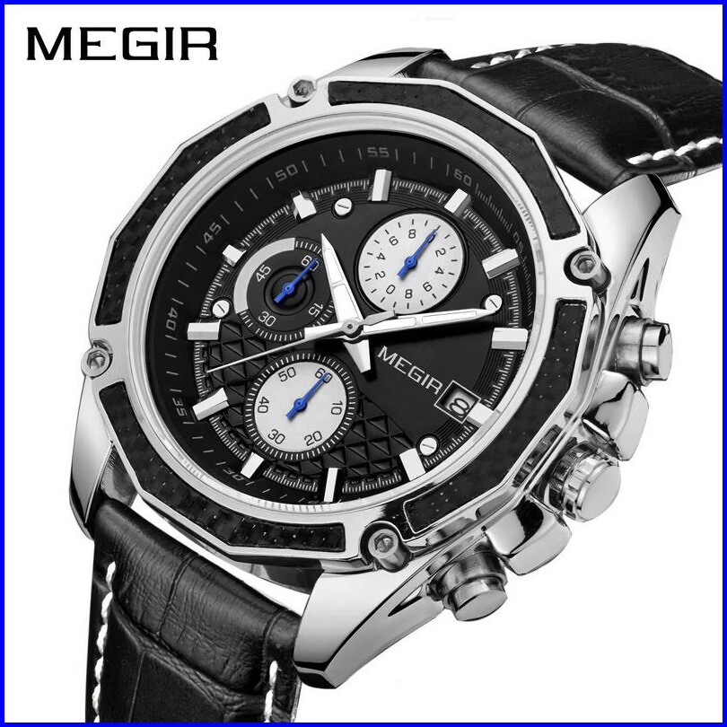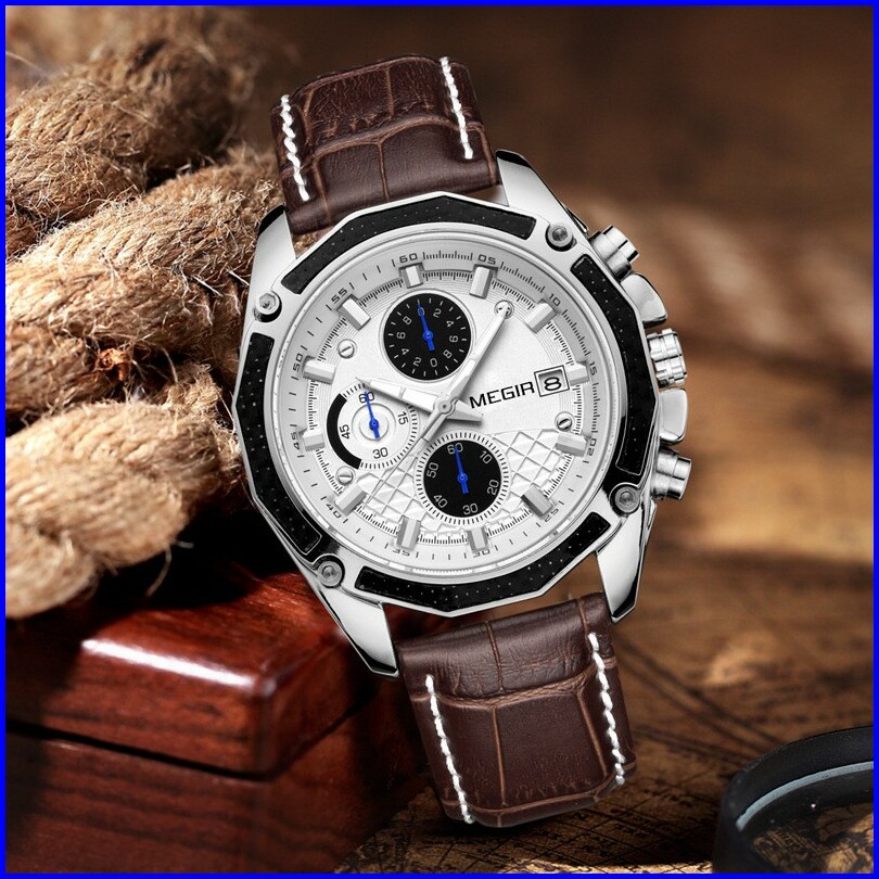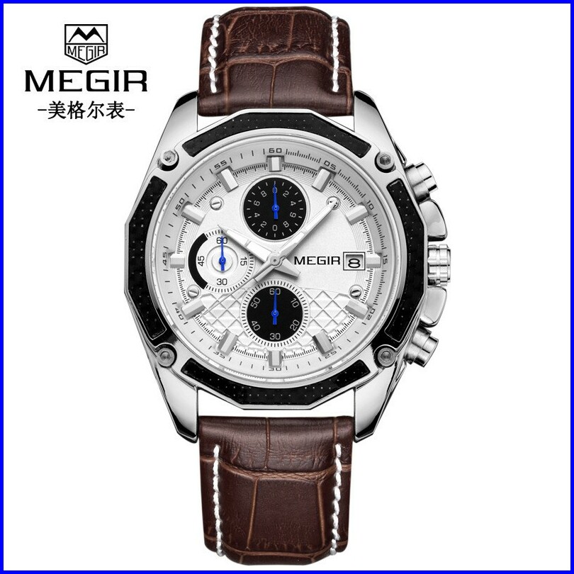 Megir 2015 Jam Tangan Pria Analog Chronograph Tanggal Aktif Tali Kulit Mgos