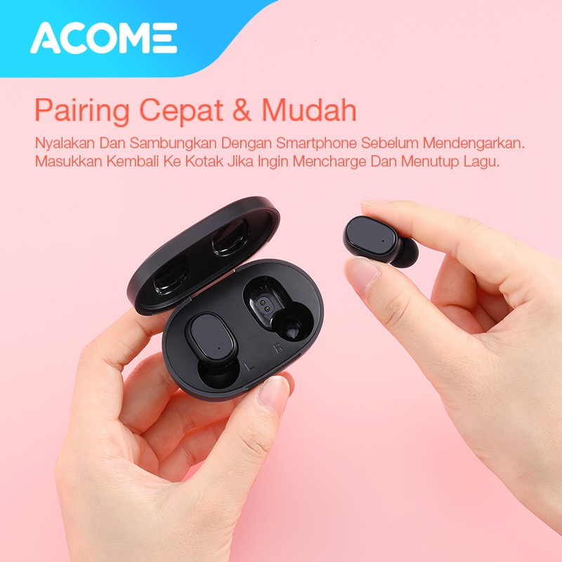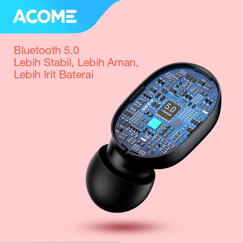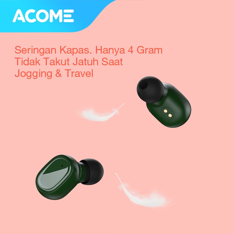 ( PROMO )Acome Headset Earphone Bluetooth 5.0 TWS LED Garansi Resmi 1 Tahun Airdots T1