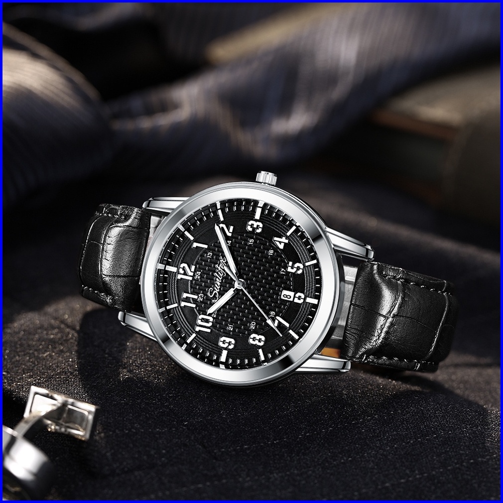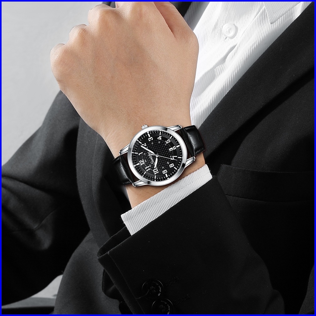 Sunlifex Jam Tangan Pria Kuarsa Klasik Santai Anti Air Calendar Tali Kulit Jam Tangan Cowok