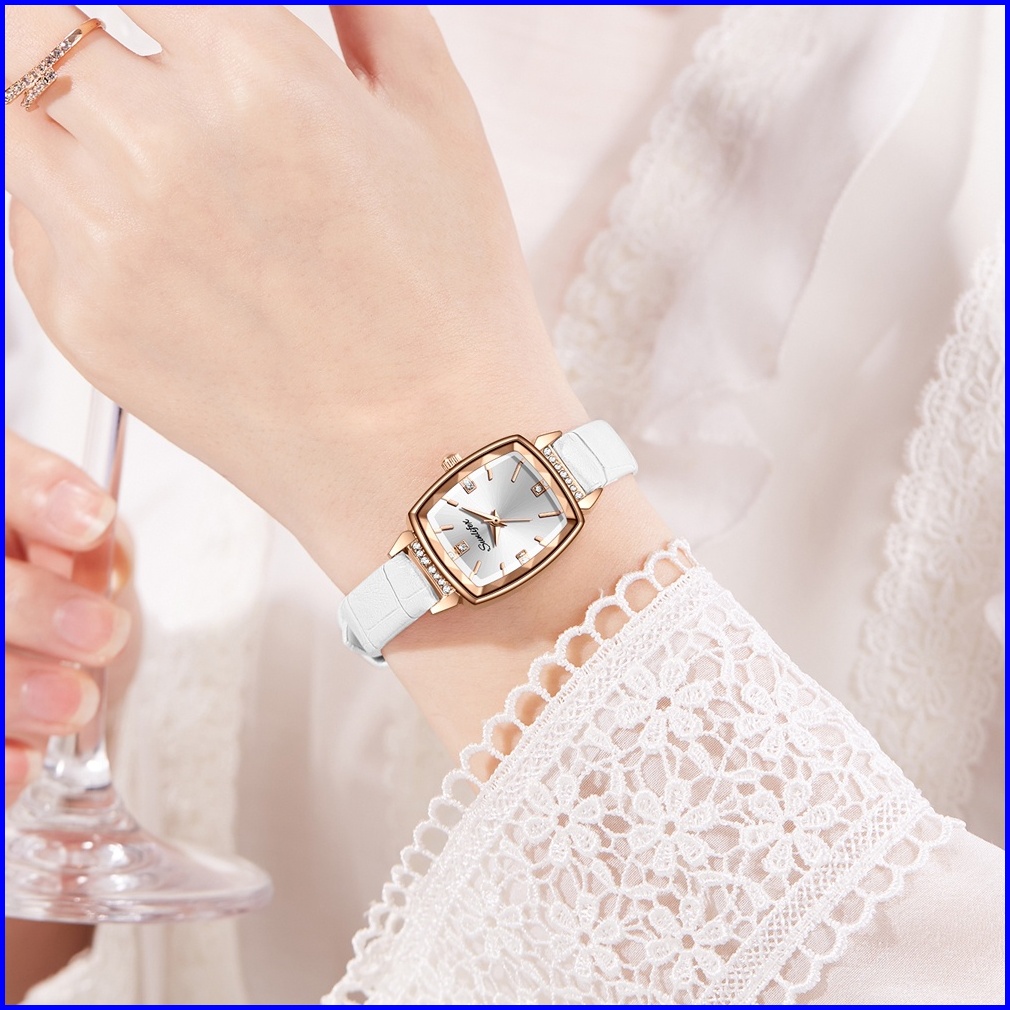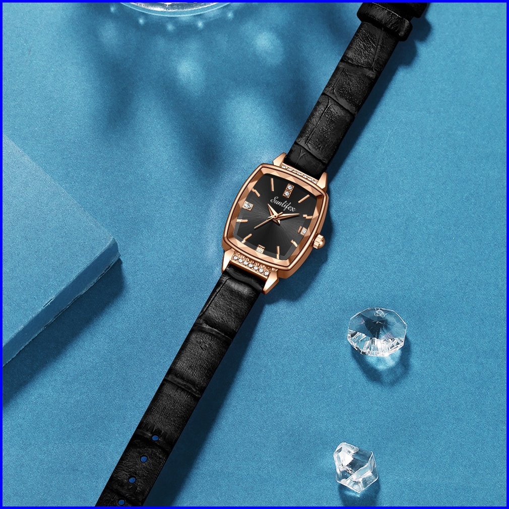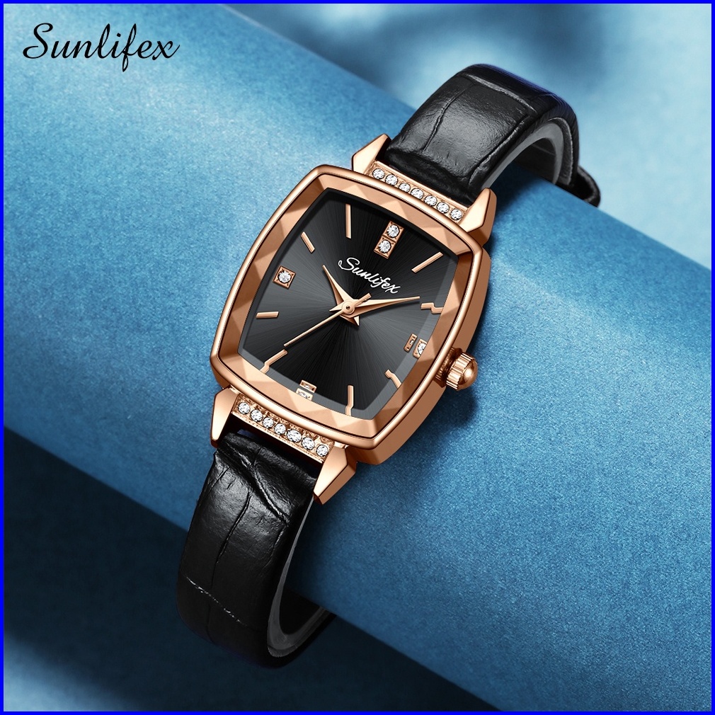 Sunlifex Jam Tangan Wanita 8006 Original Berlian Anggun Tali Kulit Kuarsa Jam Tangan Cewek