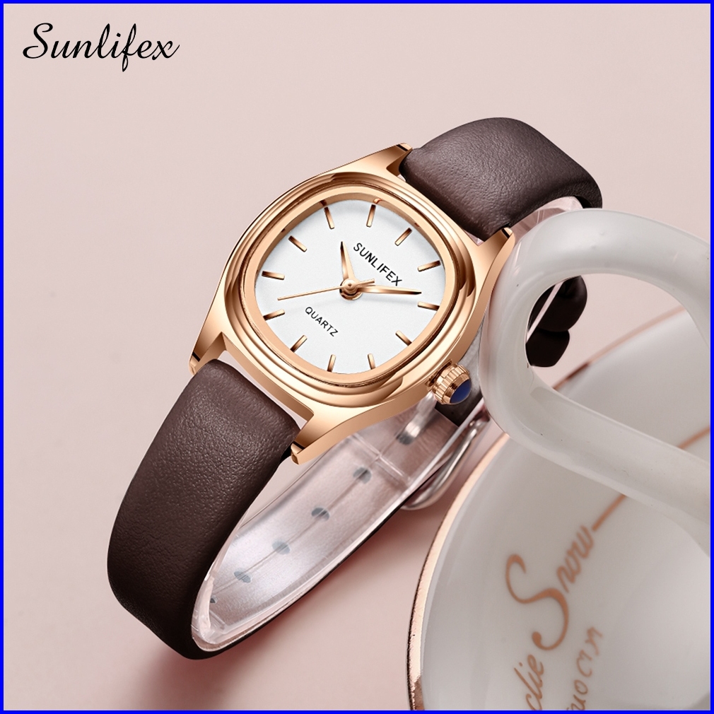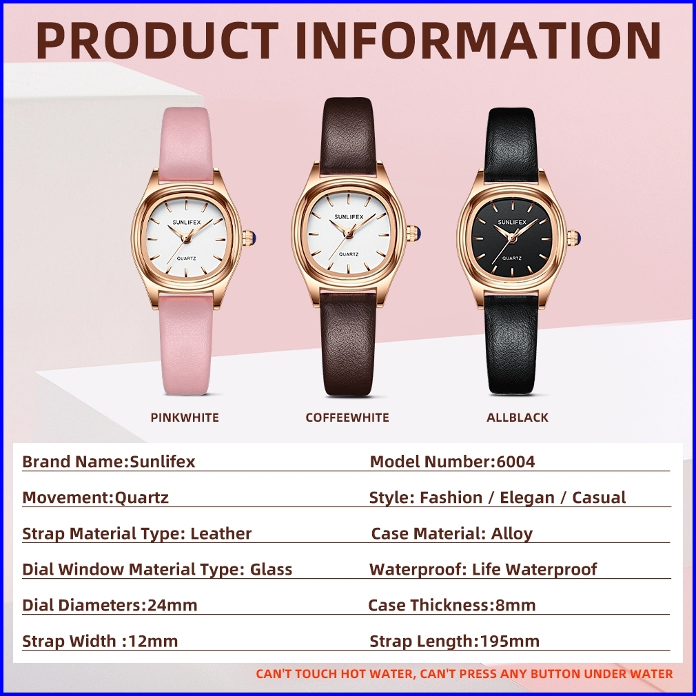 Sunlifex Jam Tangan Wantia Casual Fashion Dial Kotak Analog Quartz Strap Pu Leather Jam Tangan Cewek