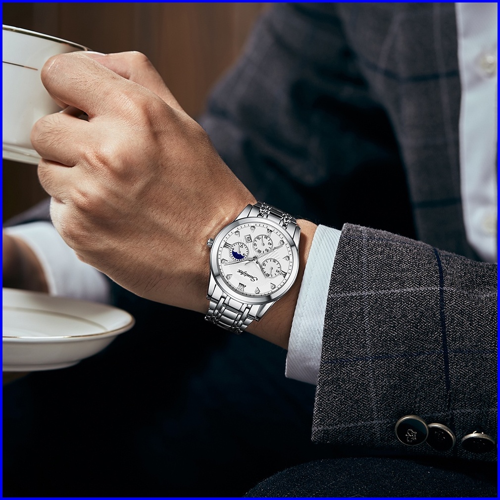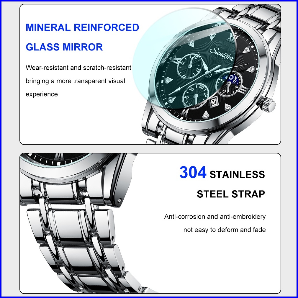 Sunlifex Jam Tangan Pria 9004a Original Mode Santai Pria Anti Air Kuarsa Tali Stainless Steel Jam Tangan Cowok