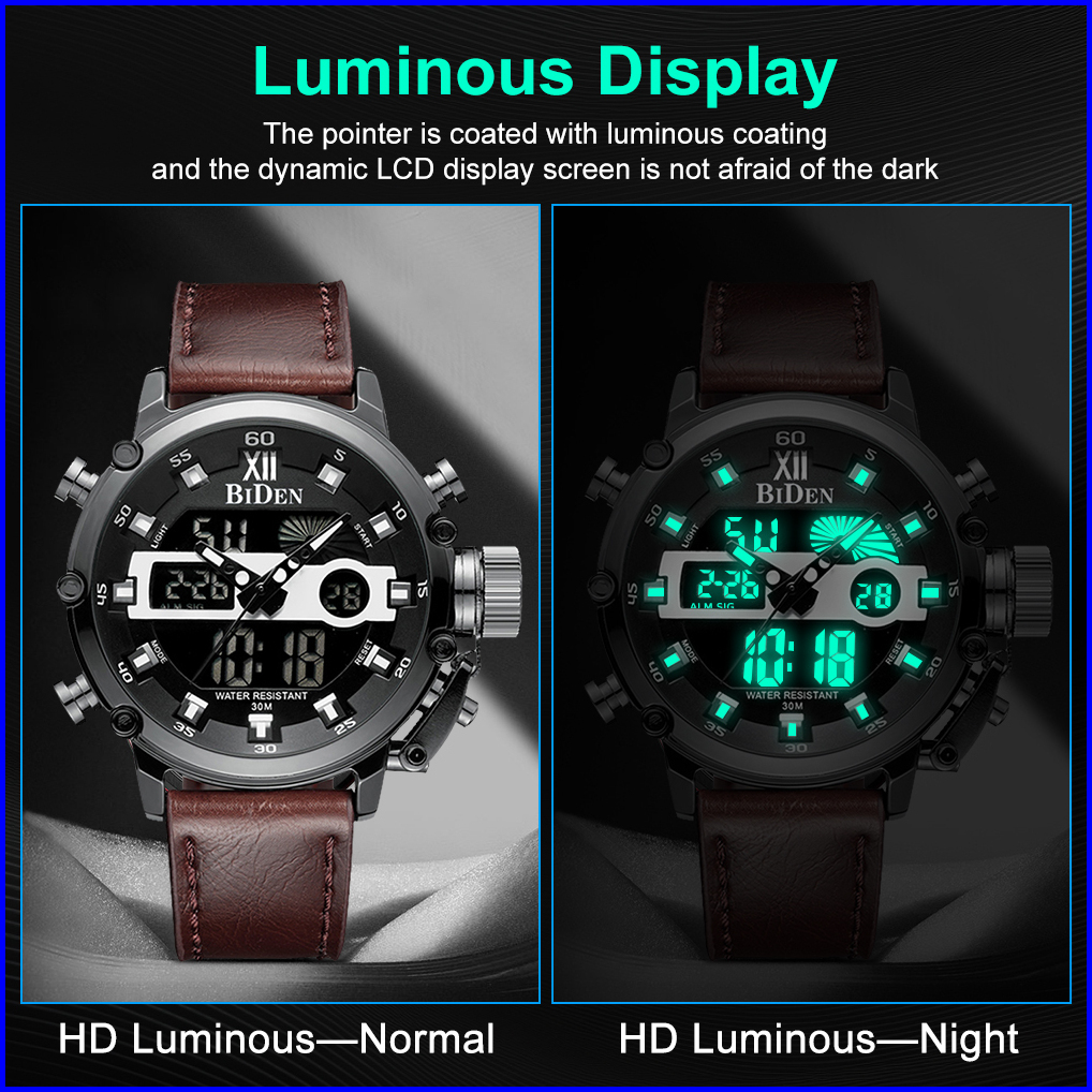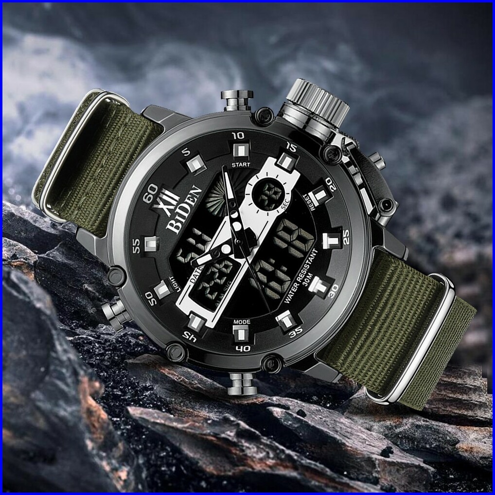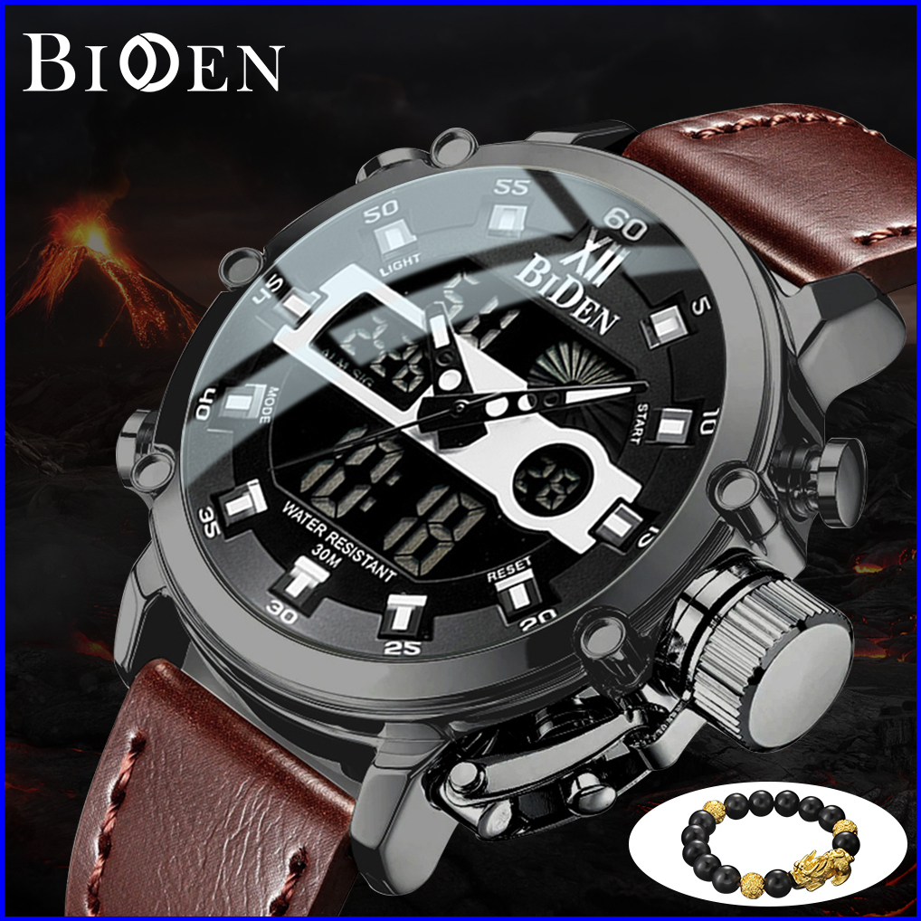 Biden Jam Tangan Pria Olahraga Militer Analog Digital Tali Tali Kulit Anti Air Kuarsa Jam Tangan Cowok Original