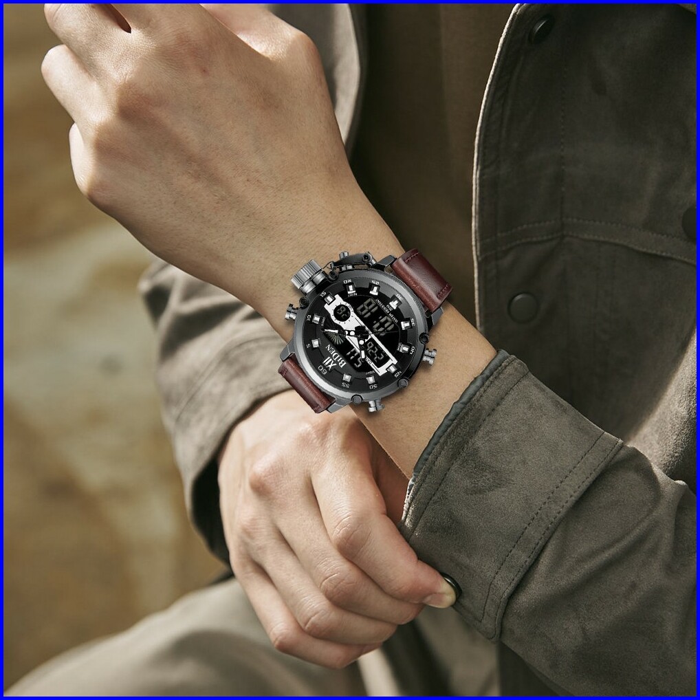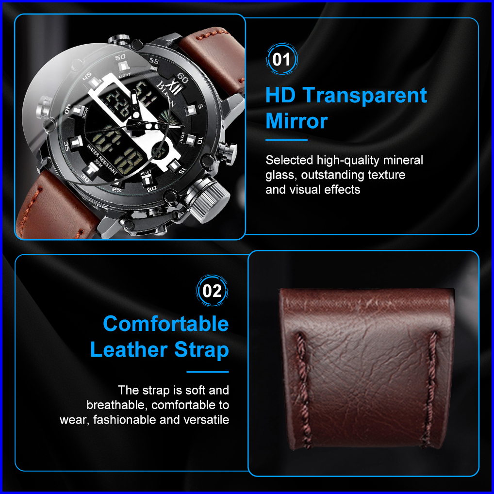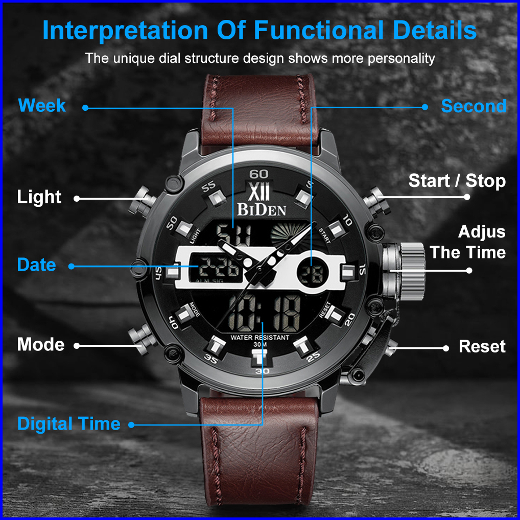 Biden Jam Tangan Pria Olahraga Militer Analog Digital Tali Tali Kulit Anti Air Kuarsa Jam Tangan Cowok Original