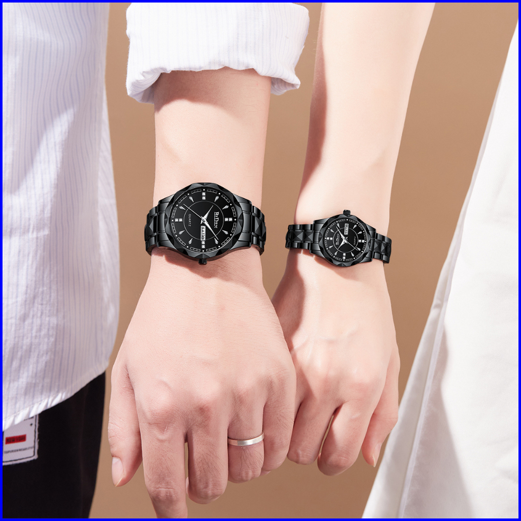 Biden Jam Tangan Couple Anti Air Original Pasangan S001 Tali Stainless Steel Kemewahan Kasual Wanita Pria 2 Buah
