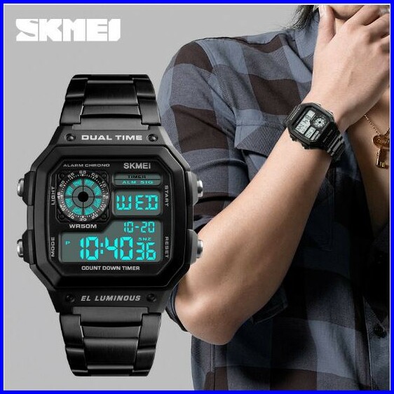 Skmei 1335 Jam Tangan Pria Wanita Digital Tali Stainless Anti Air Mgos